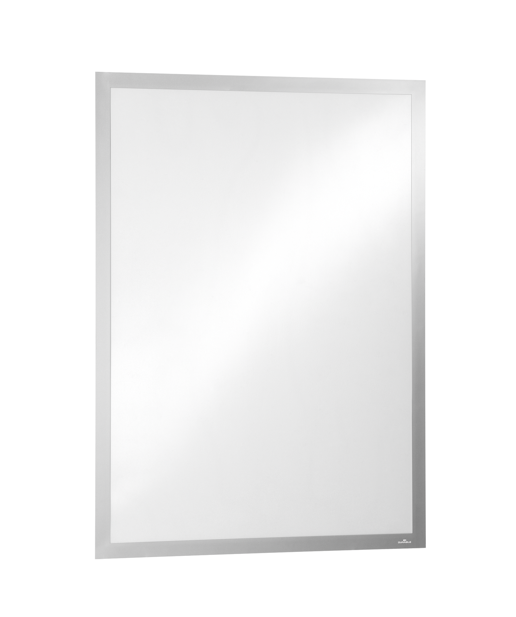 Benyt DURAFRAME® POSTER inforamme til at vise og præsentere salgsfremmende tilbud, åbningstider, reklamer osv. på en professionel måde i butiksvinduer, på vægge eller glasvægge. Rammen holdes sammen med flade magneter langs de lange sider, og det er nemt at indsætte eller ændre beskeder ved at løfte fronten. Let at sætte op – glat og pænt uden bobler – med to selvklæbende strimler på bagsidens korte sider. Plakatrammen kan fjernes fra glatte og faste overflader uden at efterlade rester. Det ser bedre ud end tape! Rammen har plads til 2 plakater (150gr papir) og kan læses fra begge sider med den samme flotte ramme på forsiden som på bagsiden. Fremstillet af PET-plast.Varmebestandig op til 70° og UV-stabil i op til 2 år. Til plakater i højformat eller liggende format 50 x 70. Udvendige mål 545 x 745 mm. Farve: sølv Praktisk pladsbesparende emballage med 1 sammenrullet ramme