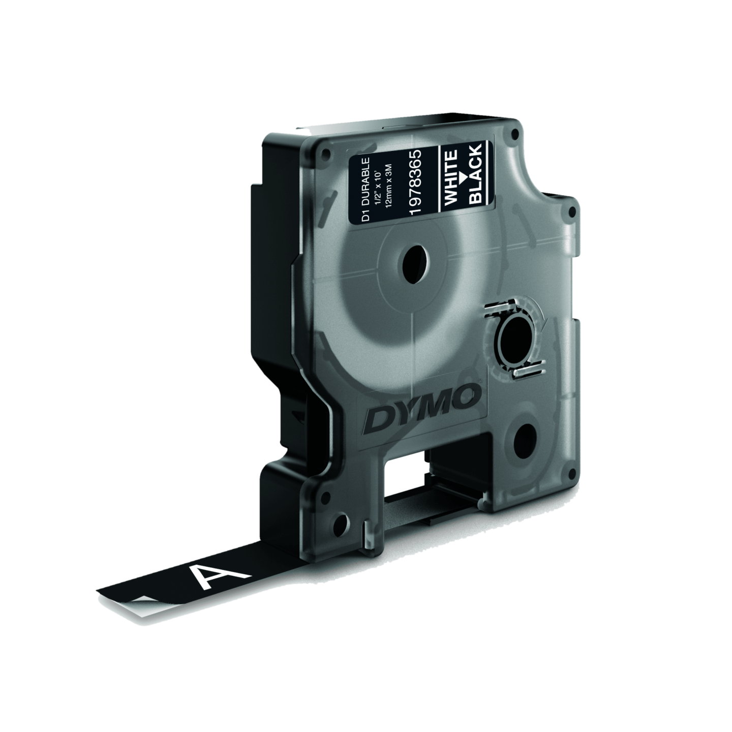 DYMO D1® Durable tape hvid på sort 12 mm x 3m. DYMO D1®-etiketter er skabt specifikt til dine LabelManager®- og LabelWriter® Duo-etiketmaskiner . DYMO D1 Durableetikettape har klæbemiddel i industrikvalitet og modstår falmning, afskalning og afslidning.Passer til alle typer overflader, lige, buede, strukturede osv. Ideelt til etiketter til køkken, spisekammer, bryggers, vaskerum, værksted eller garage. DYMO går meget op i miljøet, og tænker på genbrug. Derfor producere vi denne tape i Europa. Emballagen til denne DYMO tape lavet af minimum 60% genbrugsmateriale, og plastik kassetten er lavet af minimum 80% genanvendt plastik.