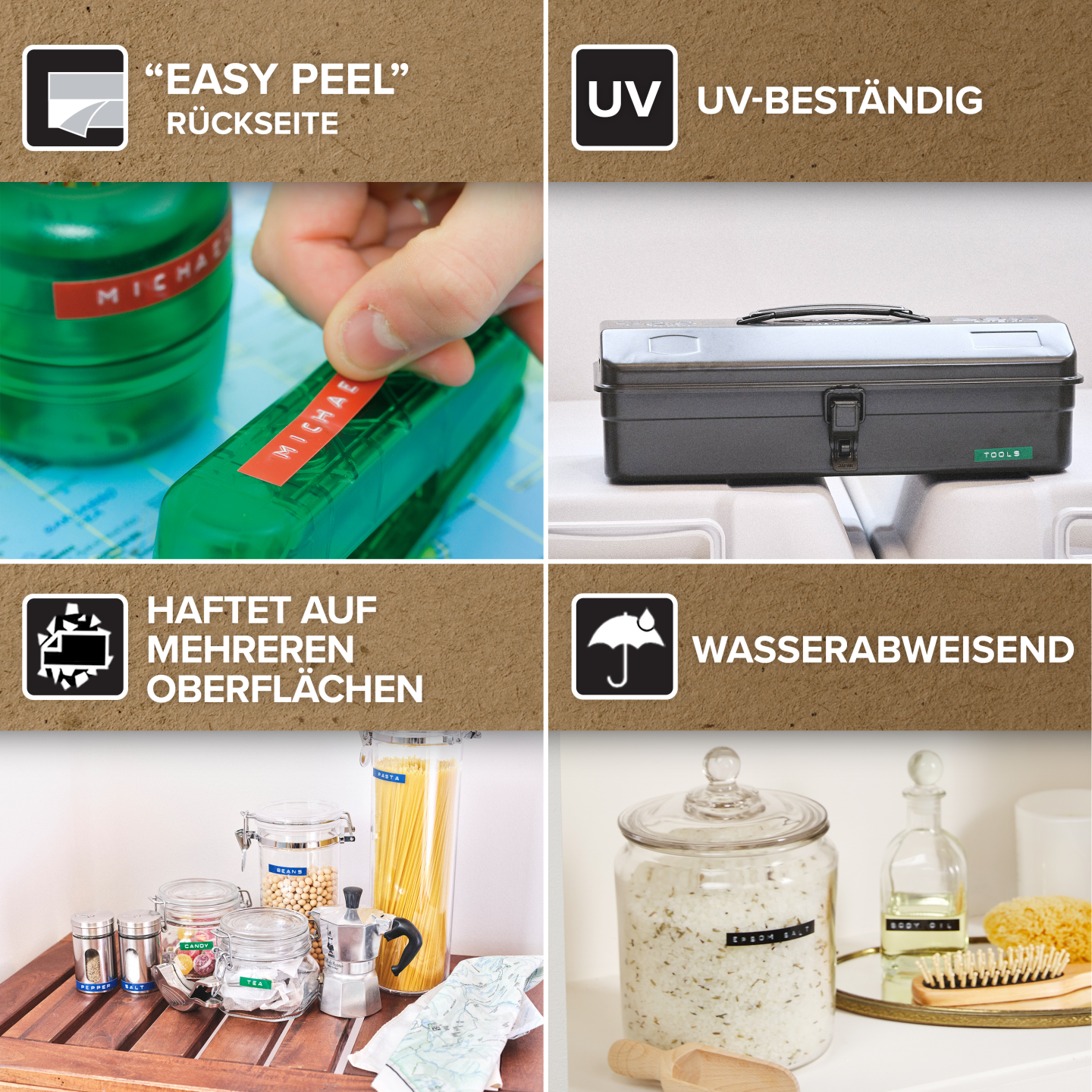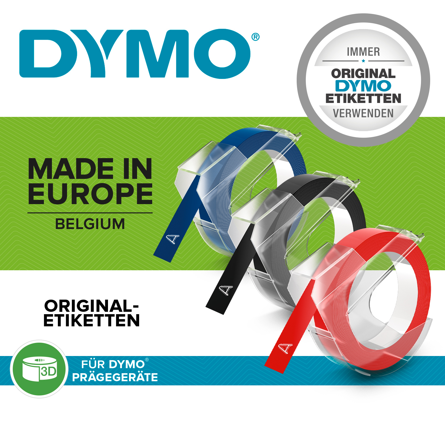 Om du bruger dem inden eller uden døre, kan du regne med DYMO® plastprægeetiketter – de holder! De klæber til enhver glat, ren overflade og fås i mange forskellige farver, til forøget visuel effekt og nem kommunikation. DYMO går meget op i miljøet, og tænker på genbrug. Alle DYMO®-etiketter er fremstillet i Europa. Emballagen til plastprægede etiketter er fremstillet af en blanding af 65 % genbrugsmaterialer og FSC-certificerede materialer.