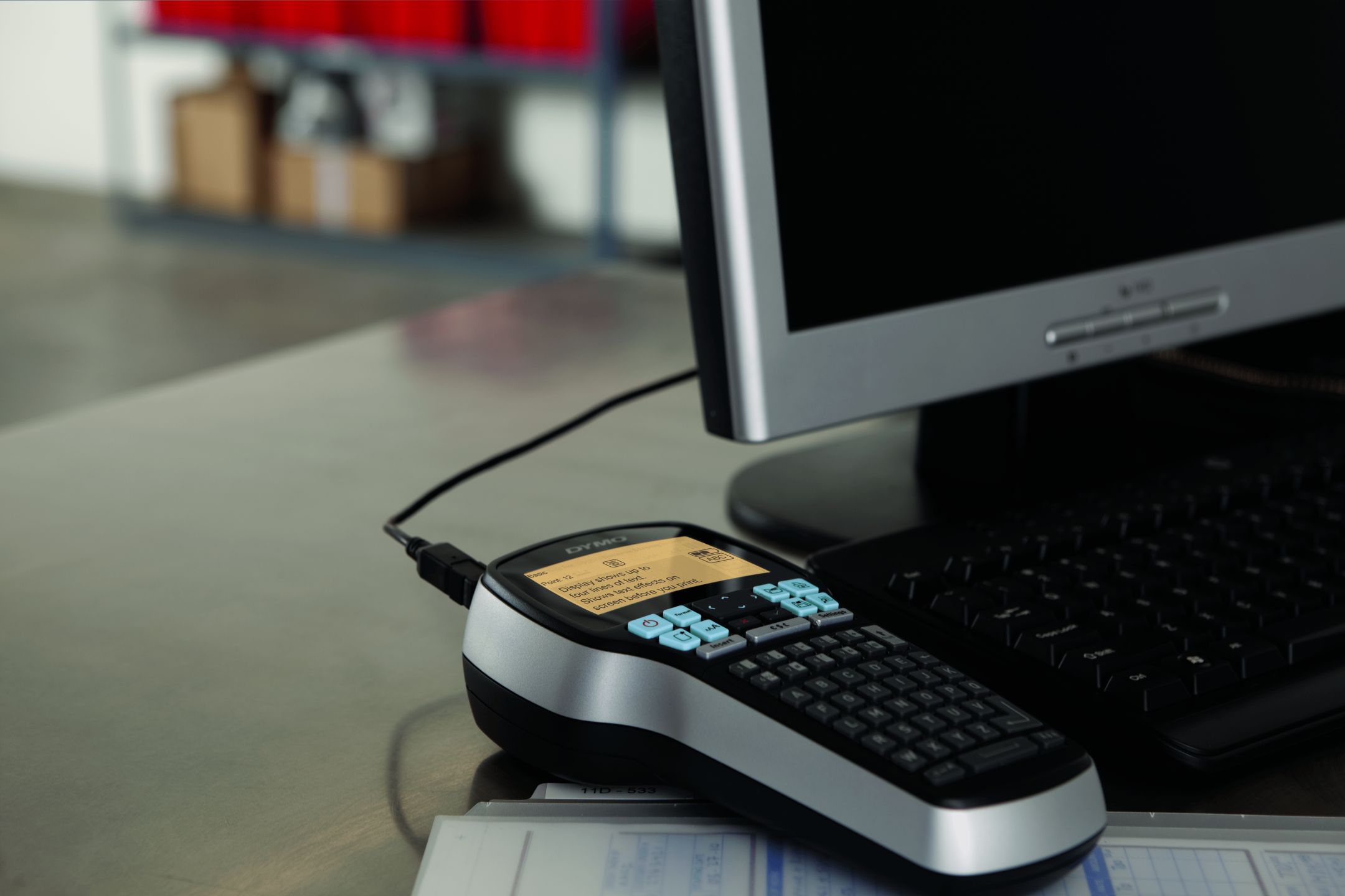 DYMO LabelManager 420P etiketmaskine kit. Etiketprinteren DYMO LabelManager 420P er ganske enkelt det bedste valg for alle, der skal printe etiketter for en mere effektiv og produktiv arbejdsplads. Tilslut den til din computer eller Mac og brug DYMO-labelsoftwaren til at få etiketterne frem på din computerskærm, med stregkoder, logoer eller grafik – eller til at printe et stort antal etiketter fra tekst i regnearks- eller databasefiler. Uafhængigt af din computer fungerer LabelManager 420P-etiketprinteren som et bærbart etiketteringsværktøj med en forbedret brugerflade, hurtige genvejstaster og adskillige skrifttyper og teksteffekter. Derudover anvender den litium-ion-batterier, så du altid er klar til at lave etiketter. Én enhed indeholder: LabelManager 420P-etiketmaskine, D1-startetiketkassette, sort på hvid,19mm, Genopladelig batteripakke, Opladeradapter, USB-kabel, Hurtigstartguide. DYMO går meget op i miljøet, og tænker på genbrug. Alle DYMO®-etiketter er fremstillet i Europa. DYMO D1 plastik kassetten er lavet af minimum 80% genanvendt plastik.