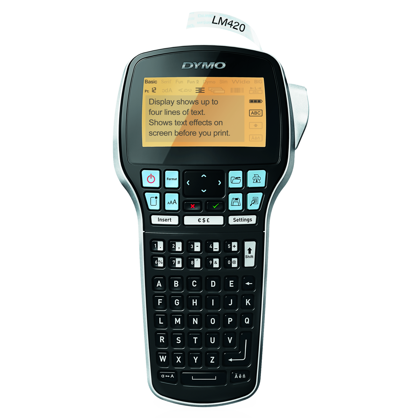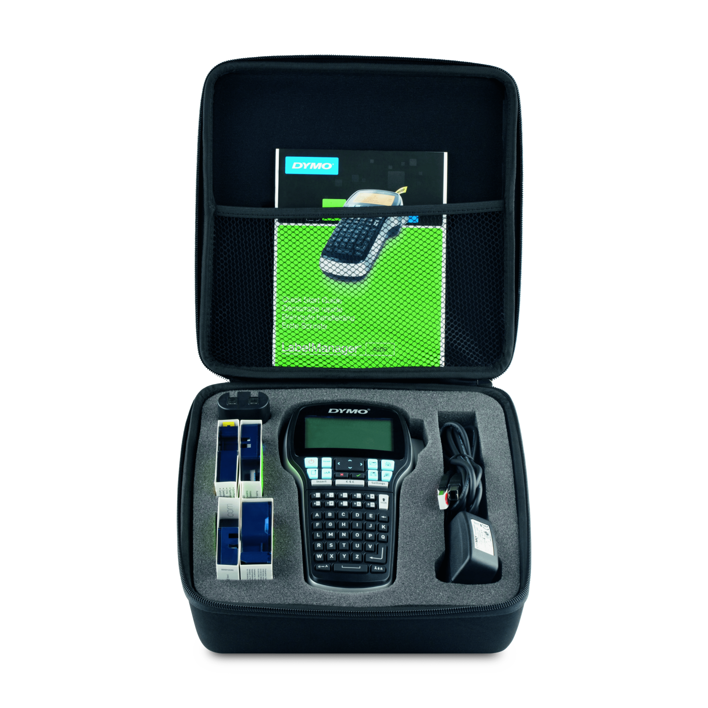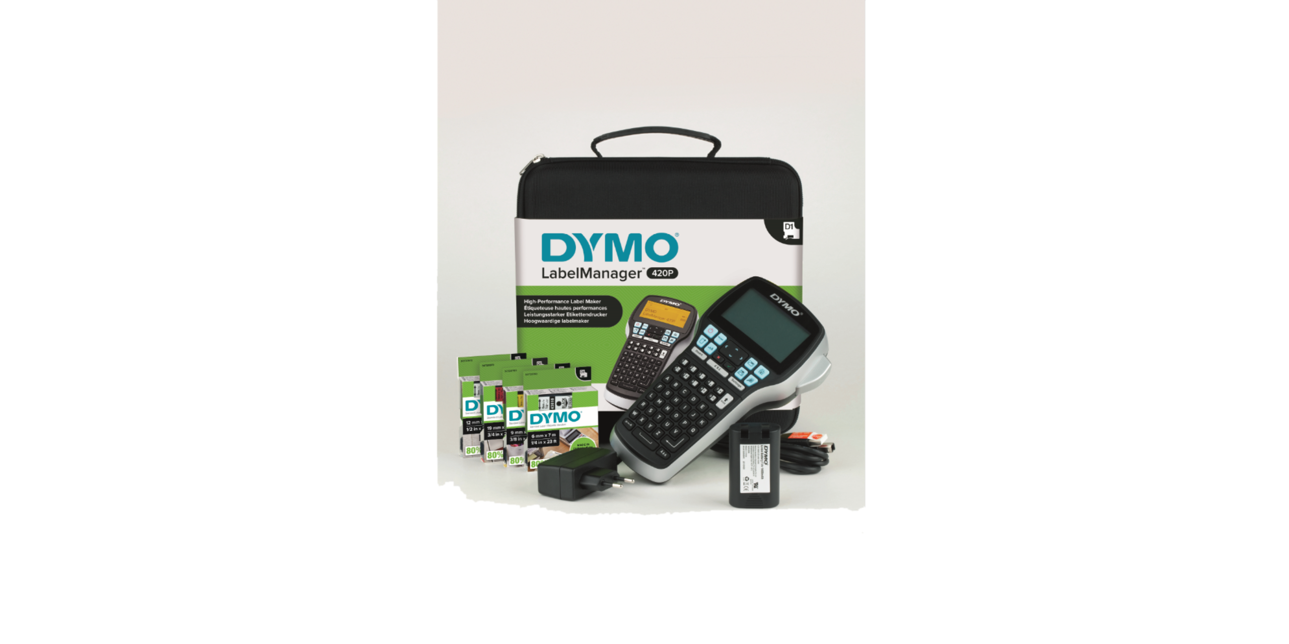 DYMO LabelManager 420P etiketmaskine kit. Etiketprinteren DYMO LabelManager 420P er ganske enkelt det bedste valg for alle, der skal printe etiketter for en mere effektiv og produktiv arbejdsplads. Tilslut den til din computer eller Mac og brug DYMO-labelsoftwaren til at få etiketterne frem på din computerskærm, med stregkoder, logoer eller grafik – eller til at printe et stort antal etiketter fra tekst i regnearks- eller databasefiler. Uafhængigt af din computer fungerer LabelManager 420P-etiketprinteren som et bærbart etiketteringsværktøj med en forbedret brugerflade, hurtige genvejstaster og adskillige skrifttyper og teksteffekter. Derudover anvender den litium-ion-batterier, så du altid er klar til at lave etiketter. Sættet indeholder: LabelManager 420P + blødt etui, Genopladeligt batterisæt, 4 stk. D1 tapekassetter, 6 mm x 7 m sort på transparent | 9 mm x 7 m sort på gul | 12 mm x 7 m sort på hvid | 19 mm x 7 m sort på rød, Opladeadapter, Quick Start Guide. DYMO går meget op i miljøet, og tænker på genbrug. Alle DYMO®-etiketter er fremstillet i Europa. DYMO D1 plastik kassetten er lavet af minimum 80% genanvendt plastik.