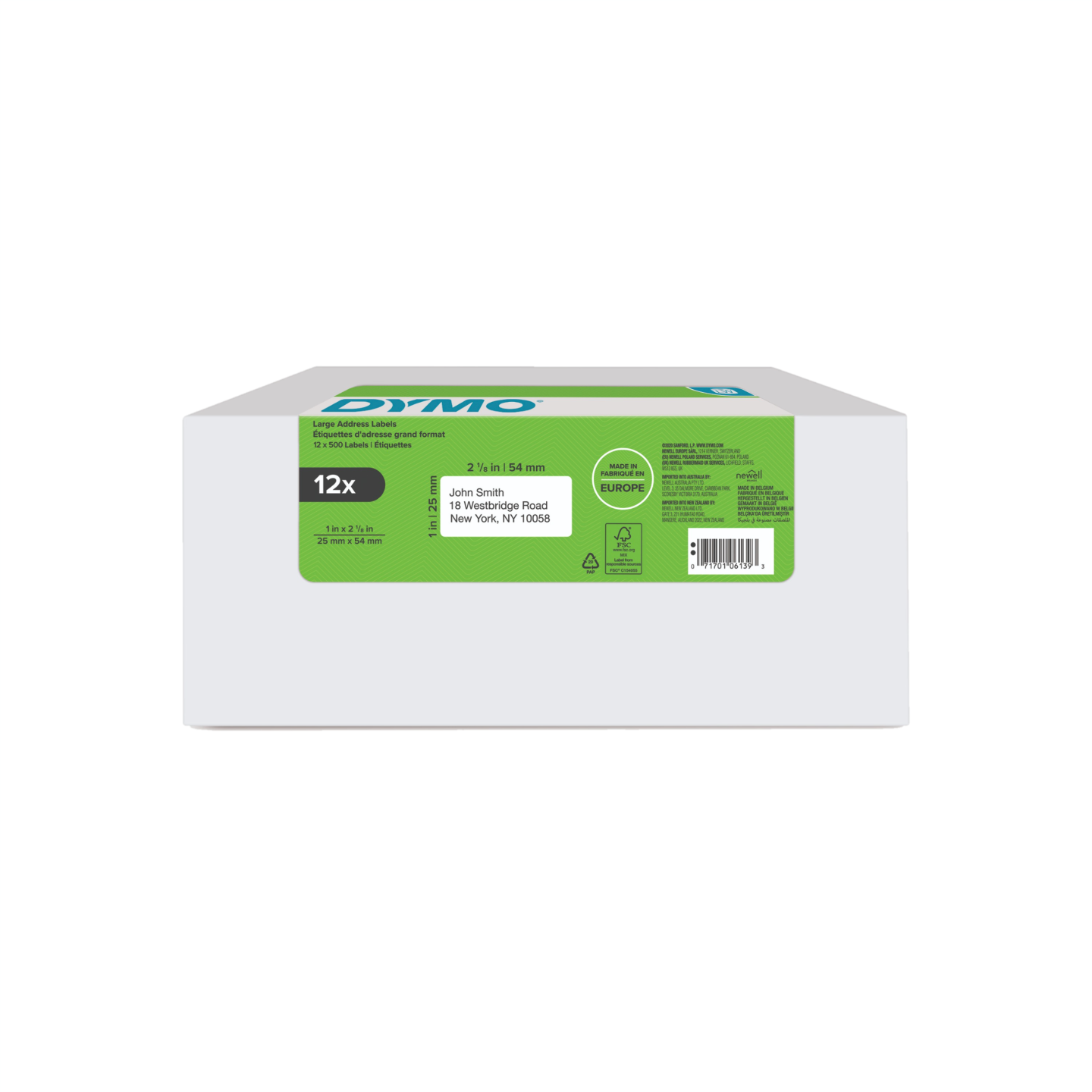 Originale DYMO adresse etiketter gør det nemt at forsende breve og pakker. DYMO LabelWriter-etiketter udskrives ved hjælp af direkte termisk printteknik, helt uden tilsmudsning og dyr blæk/toner. Og fordi disse etiketter er pakket i ruller, kan du nemt udskrive én eller hundredvis af etiketter ingen fastsiddende etiketter, layout helt uden besvær og intet spild. DYMO går meget op i miljøet, og tænker på genbrug. Derfor producere vi denne tape i Europa. DYMO papirprodukter er FSC®-certificerede, hvilket betyder, at de er lavet af materiale fra velforvaltede, FSC-certificerede skove og andre kontrollerede kilder. DYMO LabeWriter papiretiketter er fri for BPA, en kunstig belægning på papir, som negativt påvirker dets opløselighed, brugernes sundhed og miljøet. Emballagen til denne DYMO label er lavet af minimum 80% genbrugsmateriale.