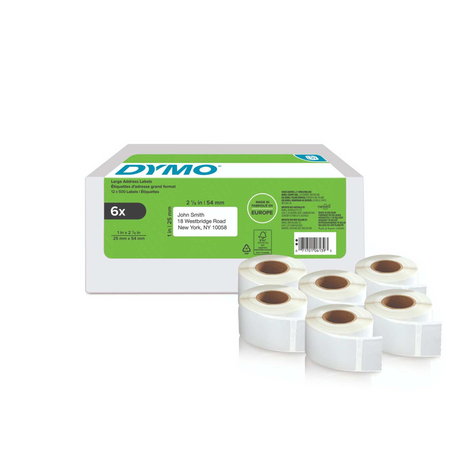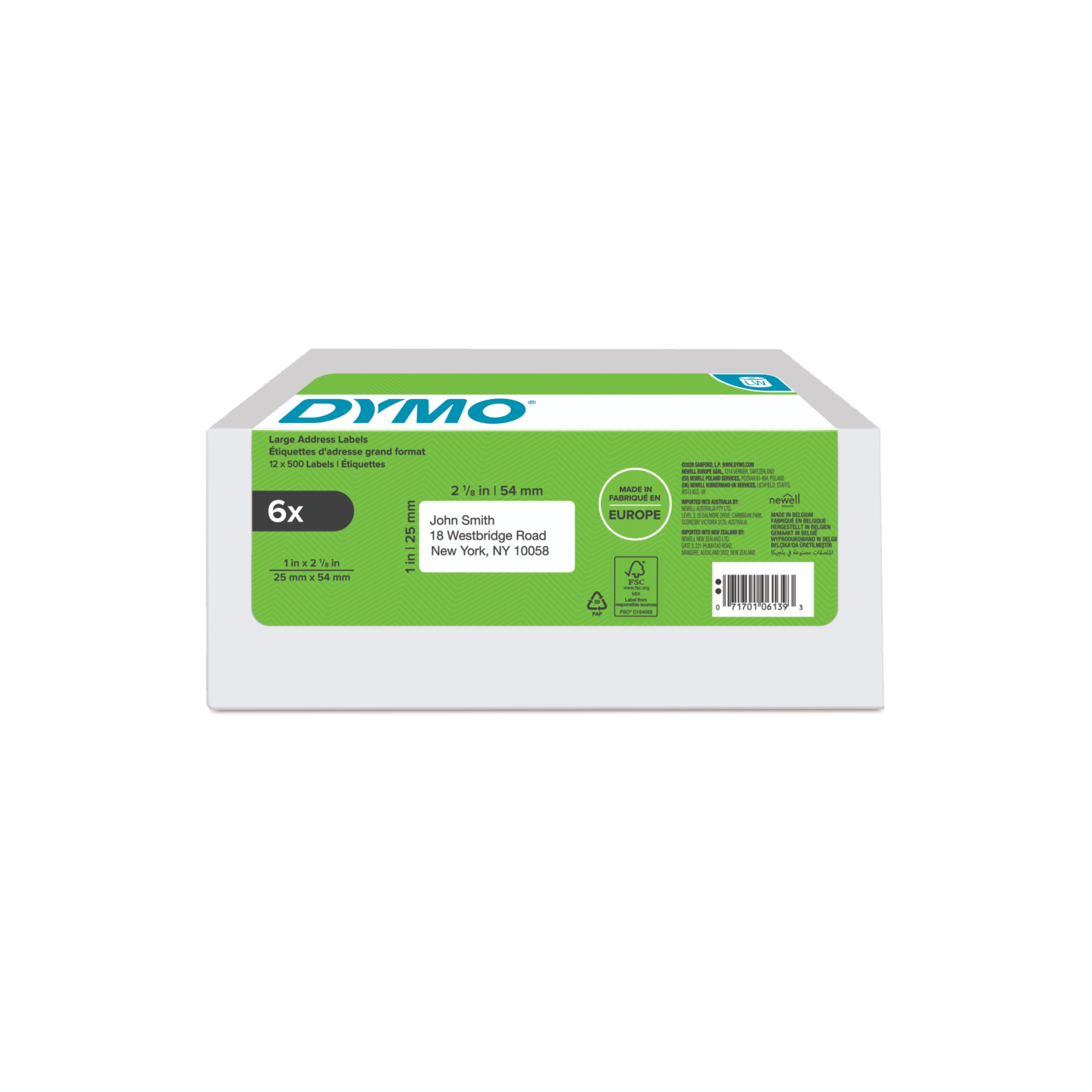 DYMO LabelWriter 25mm x 54mm Large Return Address Labels white 6 Rolls x 500 Labels