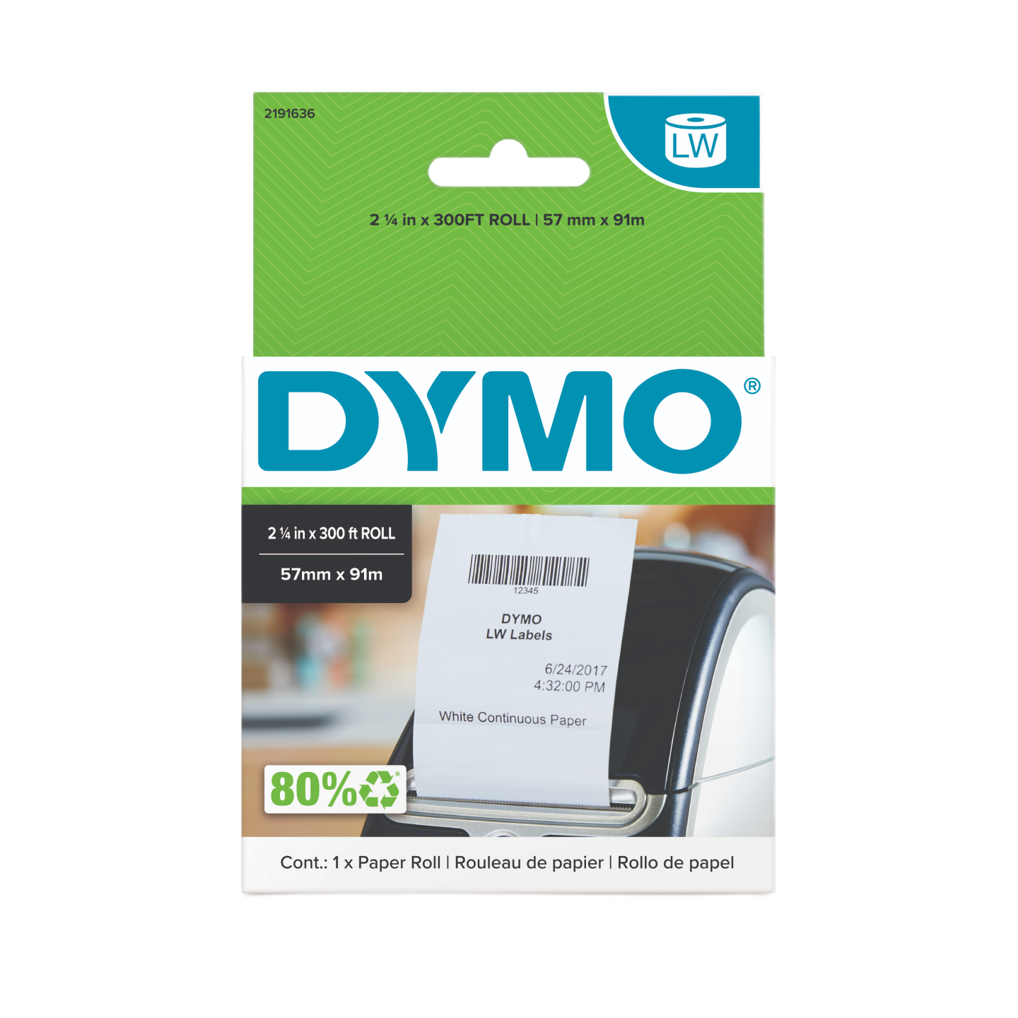 DYMO LabelWriter 57mm x 91mm Receipt Labels white paper (non-adhesive) 1 Roll
