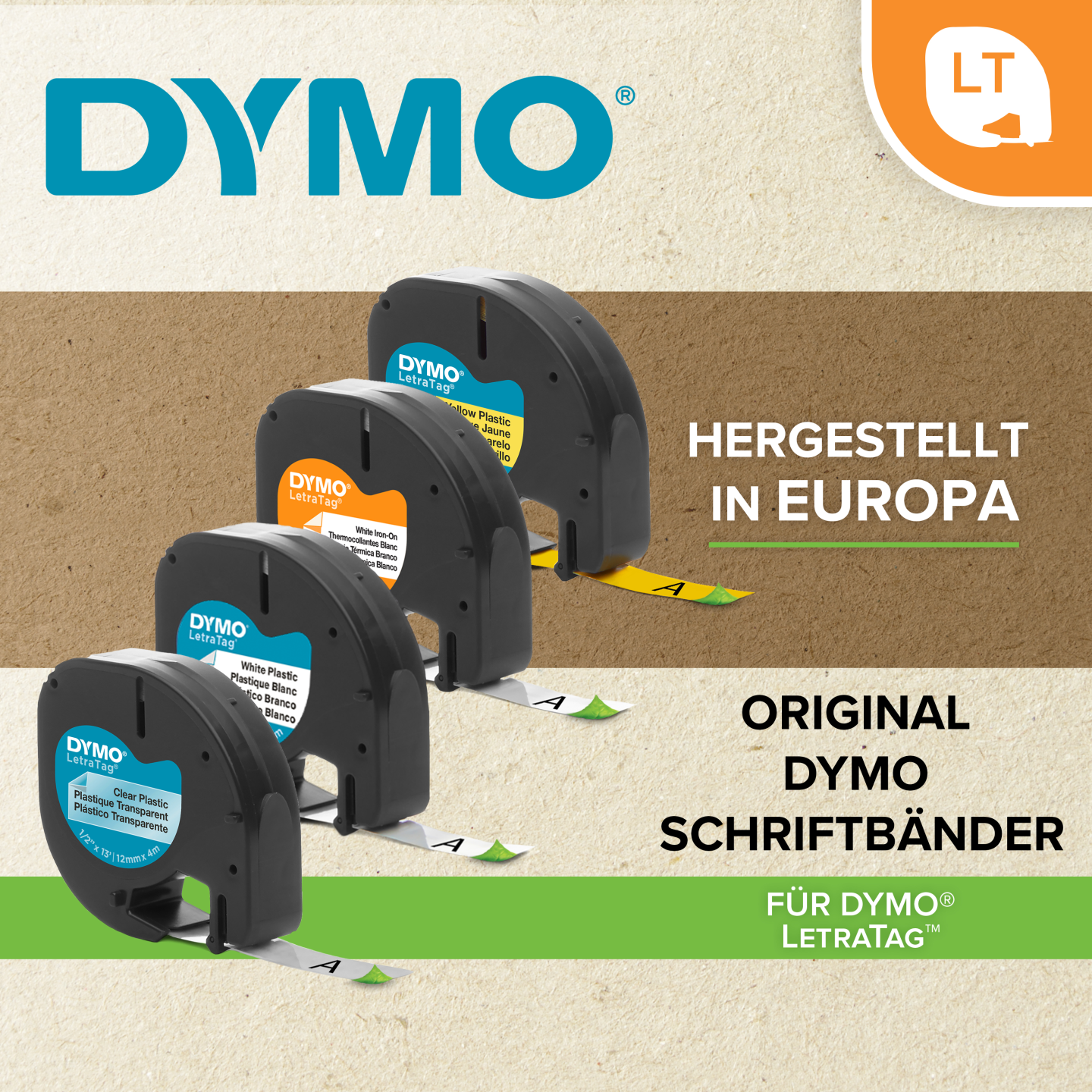DYMO LetraTag-plastetiketter er lette at bruge og tilbydes i mange forskellige farver til forbedret visuel effekt og tydelig, skarp tekst. DYMO går meget op i miljøet, og tænker på genbrug. Derfor producere vi denne tape i Europa. Emballagen til denne DYMO tape lavet af minimum 60% genbrugsmateriale, og plastik kassetten er lavet af minimum 80% genanvendt plastik.