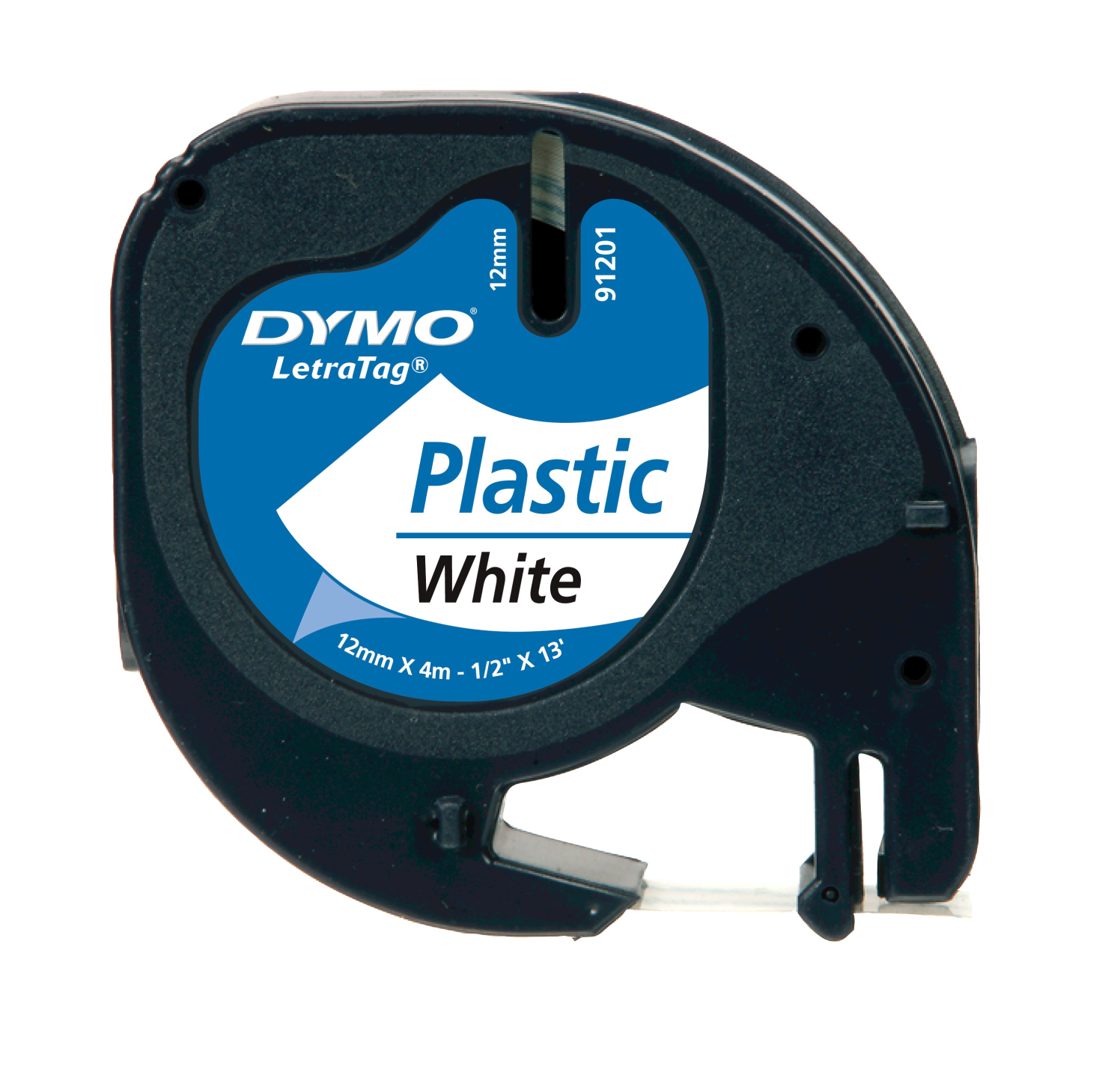 DYMO LetraTag Tape Plastic 12mm x 4m black on white