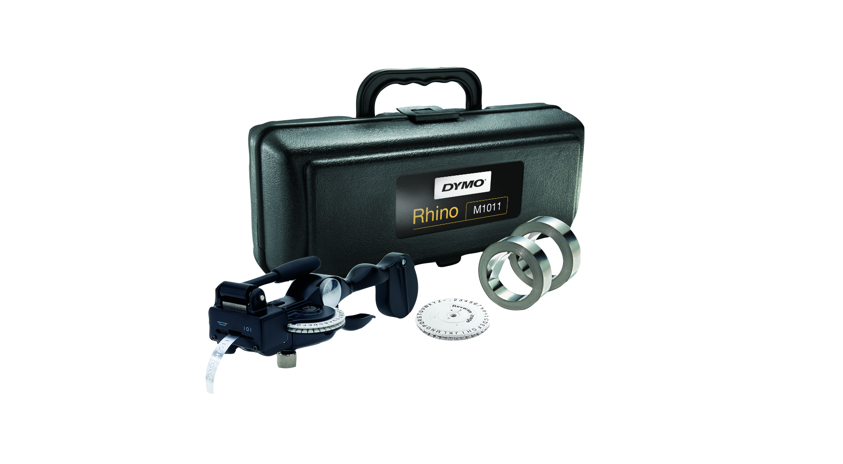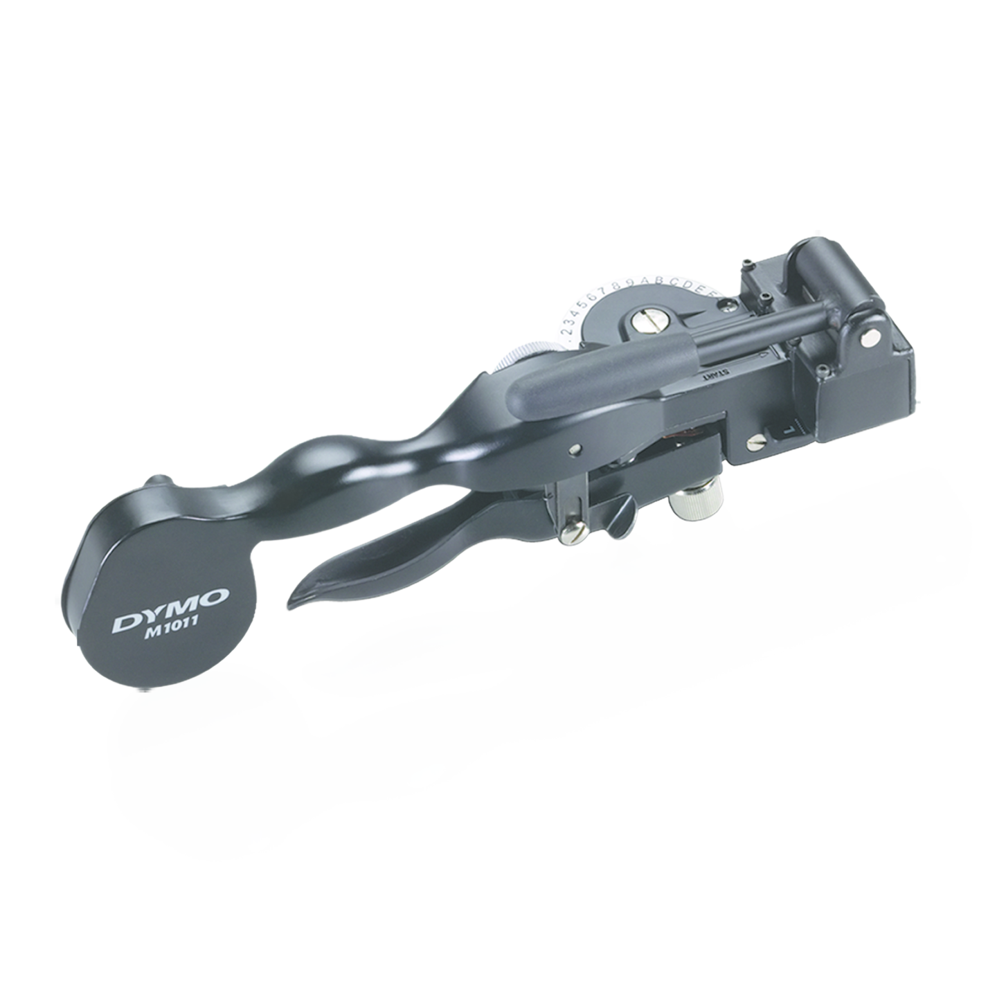Rhino M1011 præger 12 mm brede etiketter i rustfrit stål og aluminium i industrikvalitet – med og uden klæbeside – der kan modstå ekstreme påvirkninger fra vejrlig, temperaturer, kemikalier og UV-stråler. Denne langtidsholdbare prægemaskine har et brugervenligt håndtag til etiketafklipning, klipper med firkantede eller afrundede hjørner, stansere til huller og kabelbinderhuller, lineal til måling af længden af slutmellemrum og med en robust ramme i støbt aluminium.