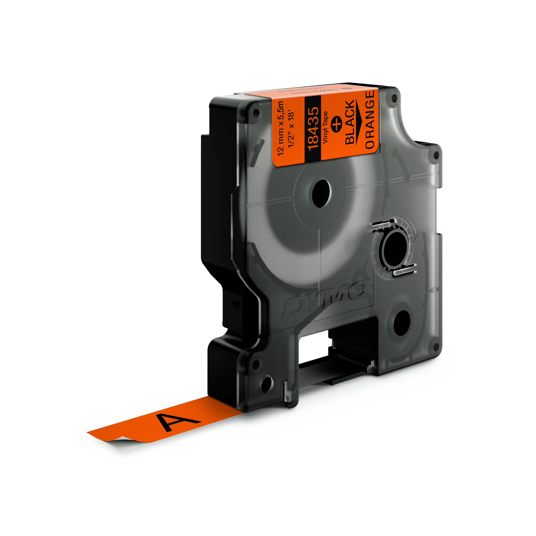 DYMO Rhino industri tape vinyl sort på orange 12mm x 5,5m. DYMO Rhino IND-vinyltape kombinerer fleksibilitet, en stærk lim og en høj kemisk resistens, hvilket gør denne tape velegnet til mange type applikationer. Til generel etiketmærkning eller ekstreme omgivelser, vinyletiketter, som er modstandsdygtige over for fugt, kemikalier og UV-stråling, og som er ideelle til mærkning både inden og uden døre. For at lette påsætningen har tapene slids i bagpapiret, så det let fjernes inden påsætning ( dog ikke 6 mm) Tåler -30gr C- +150gr C og vand, olie og fedtstof samt svagere opløsningsmidler. Opfylder de vigtigste farvestandarder ifølge OSHA, ANSI og ISO. DYMO går meget op i miljøet, og tænker på genbrug. Derfor producere vi denne tape i Europa. Emballagen til denne DYMO tape lavet af minimum 80% genbrugsmateriale, og plastik kassetten er lavet af minimum 75% genanvendt plastik.