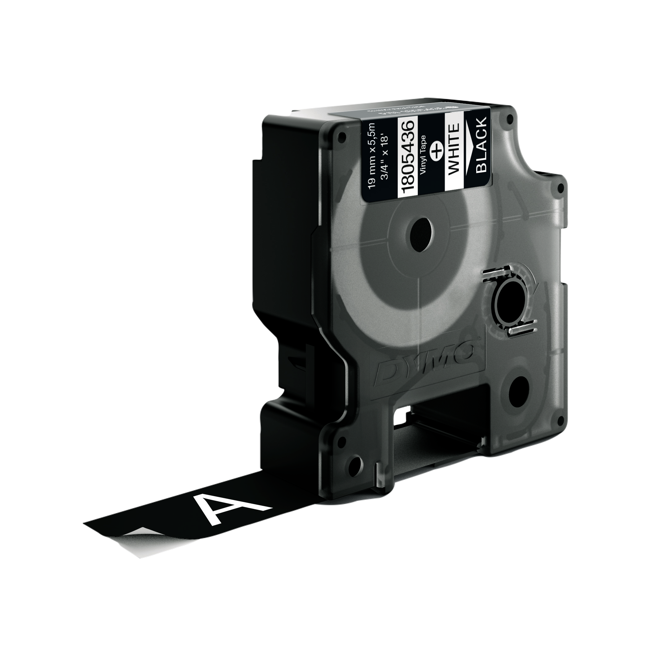DYMO Rhino industri tape vinyl tape 19mm x 5,5m rulle hvid på sort selvklæbende. DYMO Rhino IND-vinyltape kombinerer fleksibilitet, en stærk lim og en høj kemisk resistens, hvilket gør denne tape velegnet til mange type applikationer. Til generel etiketmærkning eller ekstreme omgivelser, vinyletiketter, som er modstandsdygtige over for fugt, kemikalier og UV-stråling, og som er ideelle til mærkning både inden og uden døre. For at lette påsætningen har tapene slids i bagpapiret, så det let fjernes inden påsætning ( dog ikke 6 mm) Tåler -30gr C- +150gr C og vand, olie og fedtstof samt svagere opløsningsmidler. Opfylder de vigtigste farvestandarder ifølge OSHA, ANSI og ISO. DYMO går meget op i miljøet, og tænker på genbrug. Derfor producere vi denne tape i Europa. Emballagen til denne DYMO tape lavet af minimum 80% genbrugsmateriale, og plastik kassetten er lavet af minimum 75% genanvendt plastik.