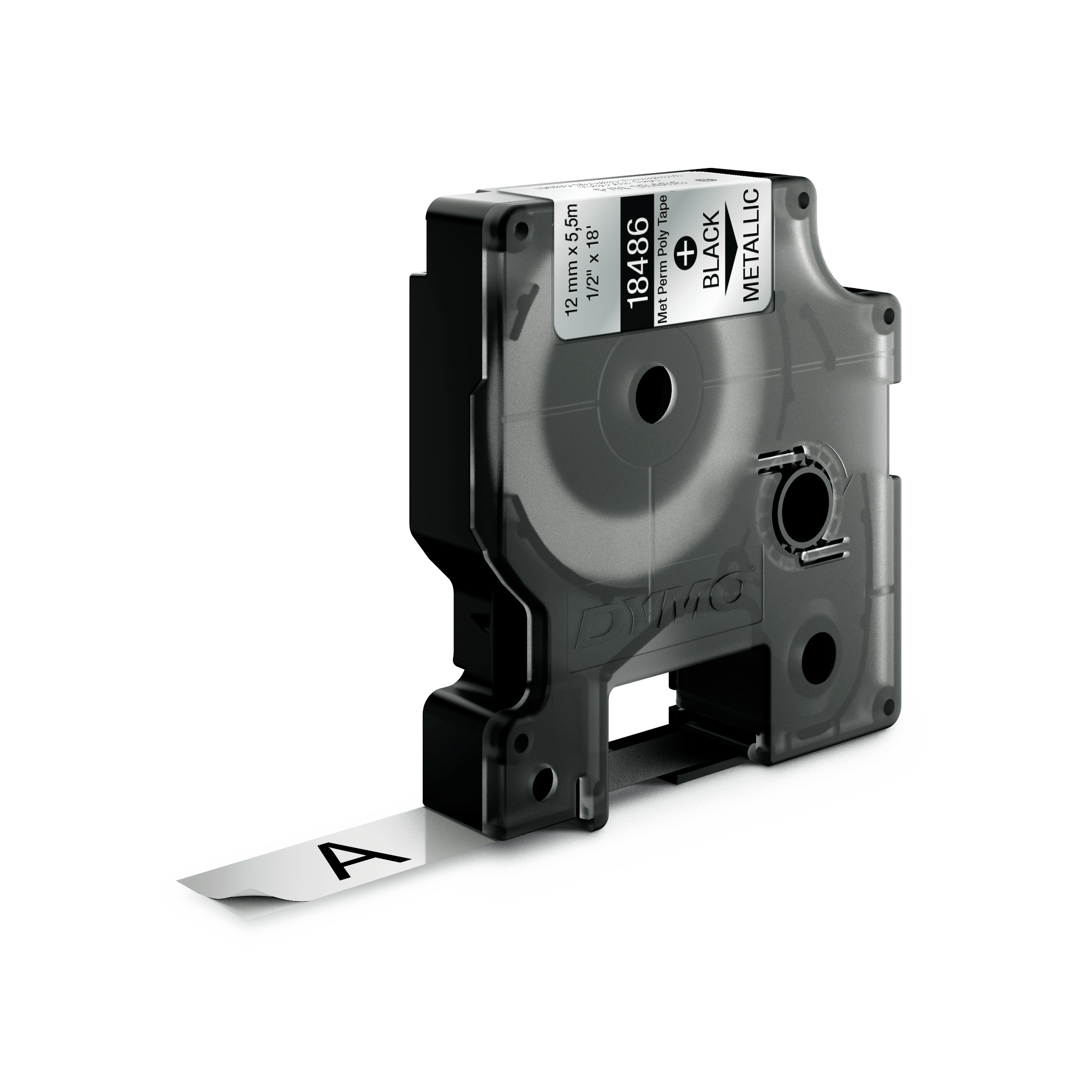 DYMO Rhino™ industri tape permanent polyester sort på metallic 12mm x 5,5m. DYMO Rhino™ IND-permanent polyester anvendes til mærkning af paneler, klemmerækker, frontpaneler, hylder, kasser, beholdere, reoler mm. Har en blank finish til professionel etiketmærkning og er yderst modstandsdygtig overfor opløsningsmidler og kemikalier. UL-godkendt som komponent ifølge UL 969. Klæbemiddel i industrikvalitet, temperaturbestandig fra – 40C til + 150C. DYMO går meget op i miljøet, og tænker på genbrug. Derfor producere vi denne tape i Europa. Emballagen til denne DYMO tape lavet af minimum 80% genbrugsmateriale, og plastik kassetten er lavet af minimum 75% genanvendt plastik.