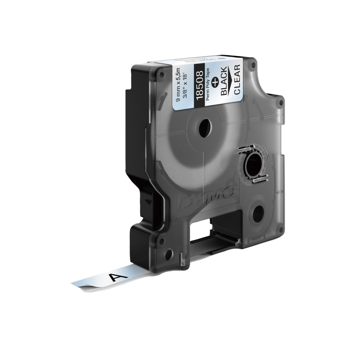 DYMO Rhino industri tape permanent polyester sort på klar 9mm x 5,5m. DYMO Rhino IND-permanent polyester anvendes til mærkning af paneler, klemmerækker, frontpaneler, hylder, kasser, beholdere, reoler mm. Har en blank finish til professionel etiketmærkning og er yderst modstandsdygtig overfor opløsningsmidler og kemikalier. UL-godkendt som komponent ifølge UL 969. Klæbemiddel i industrikvalitet, temperaturbestandig fra – 40C til + 150C. DYMO går meget op i miljøet, og tænker på genbrug. Derfor producere vi denne tape i Europa. Emballagen til denne DYMO tape lavet af minimum 80% genbrugsmateriale, og plastik kassetten er lavet af minimum 75% genanvendt plastik.