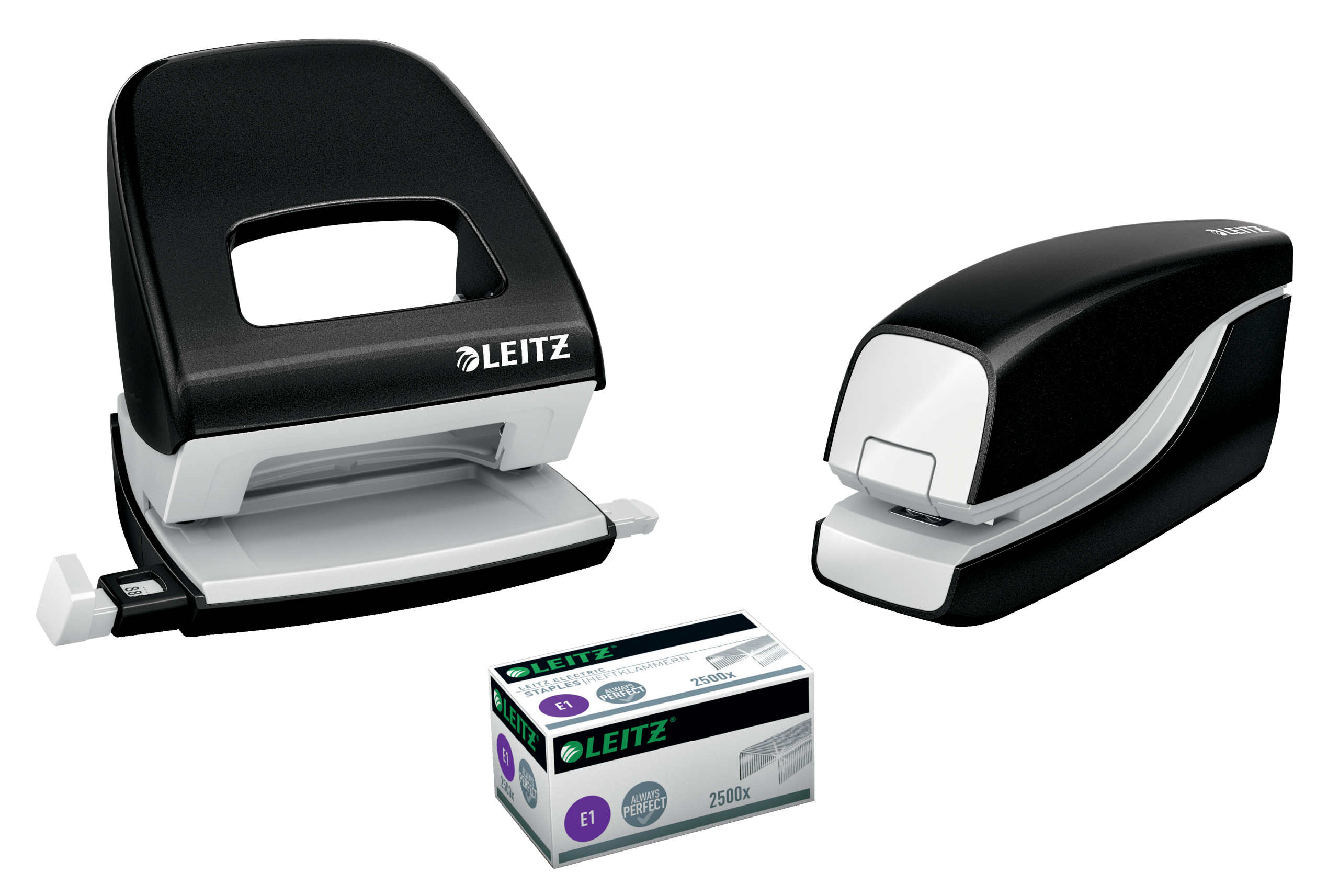 Ideel til frekvent brug. Hygiejnisk hæftning, da man ikke behøver at røre ved hæftemaskinen for at bruge den. I slående WOW farver, som lader din personlighed skinne igennem. Batteridrevet til bekvem brug på farten. Leitz e1 hæfteklammer sikrer perfekt hæftning hver gang.