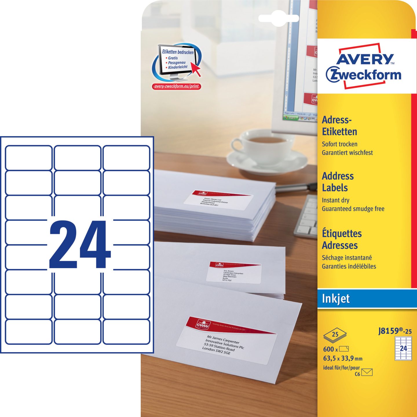 ETIKET INKJET J8159-25 ADRESSE 63.5X33.9 MM QUICKDRY
