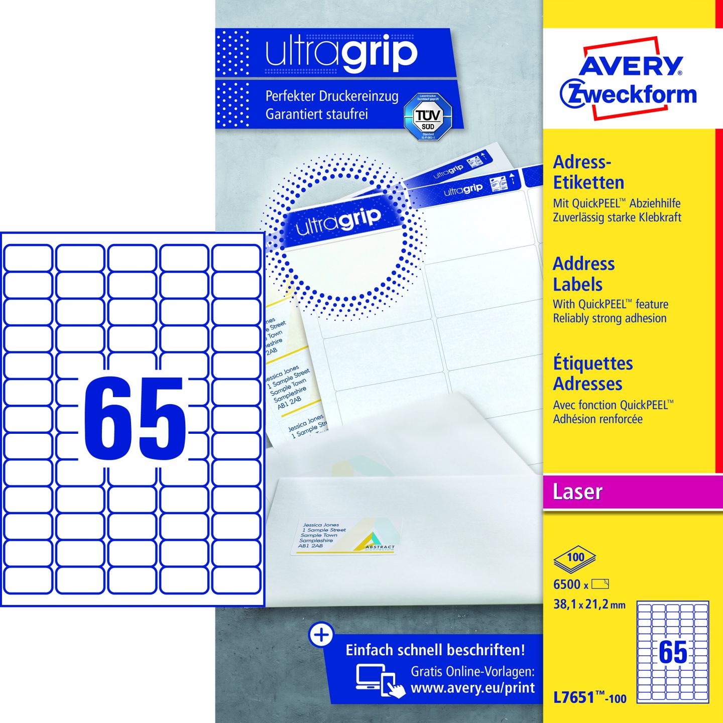 ETIKET LASER L7651-100 MINI- ADRESSE 38.1X21.2 MM M/1625