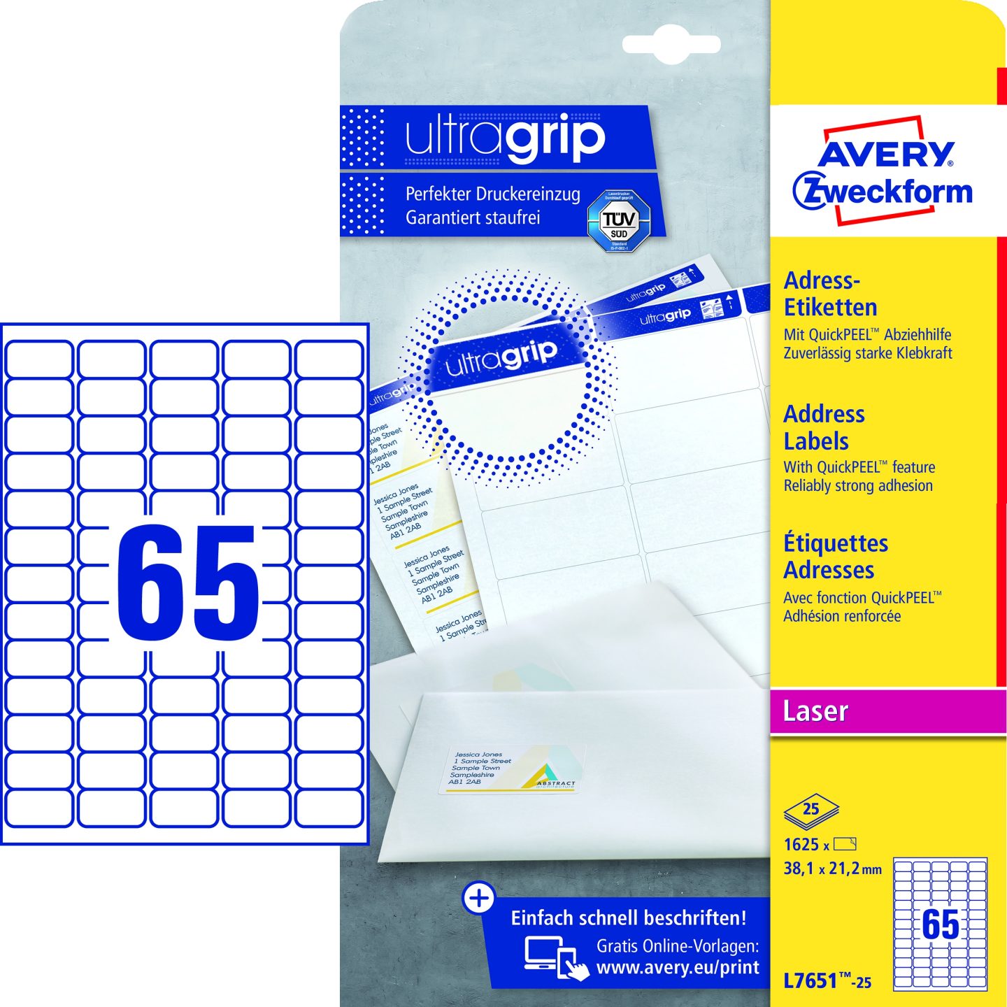 1625 etiketter til laserprint. Design selv visitkort med DesignPro-software – downloades gratis fra www.avery.dk.