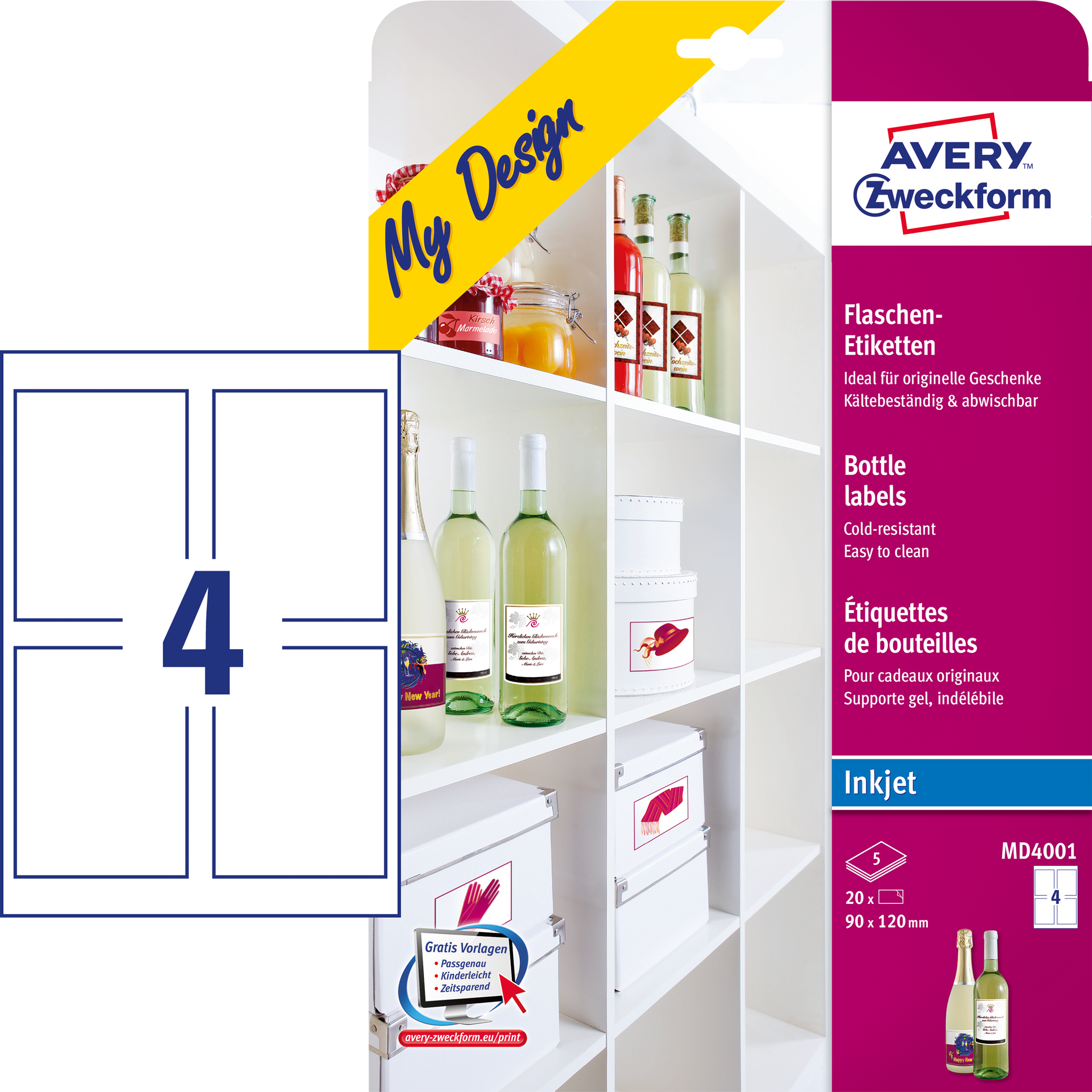 ETIKETTER AVERY MD4001 90X120 CREATIVE BOTTLE LABELS