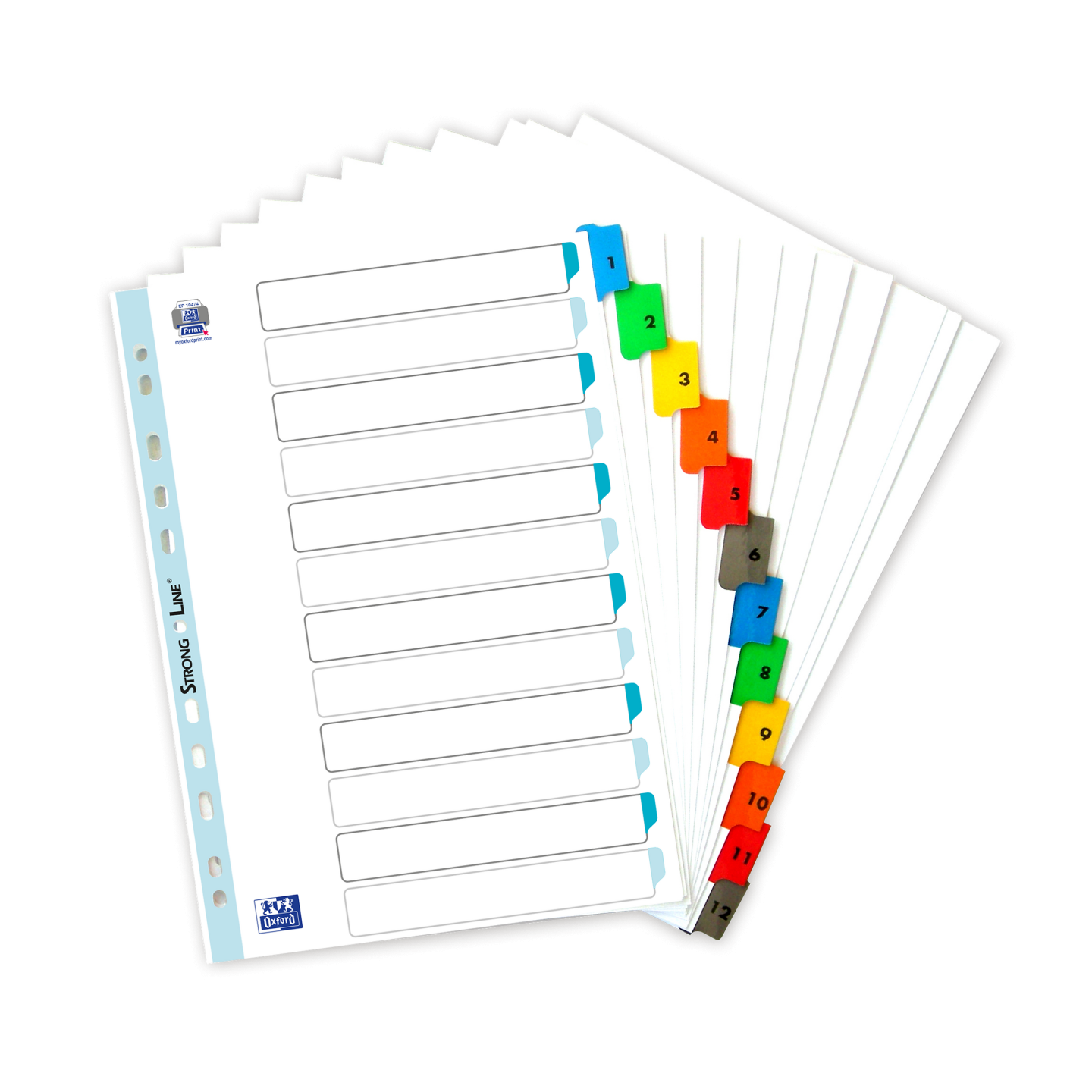 A4. 170 g hvidt kort. Numeriske faner. 12 inddelinger.
