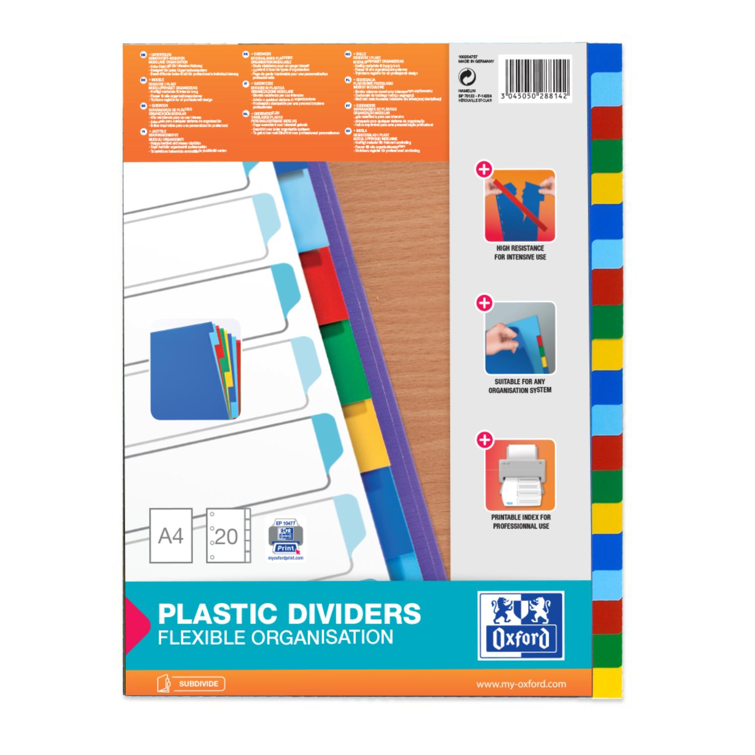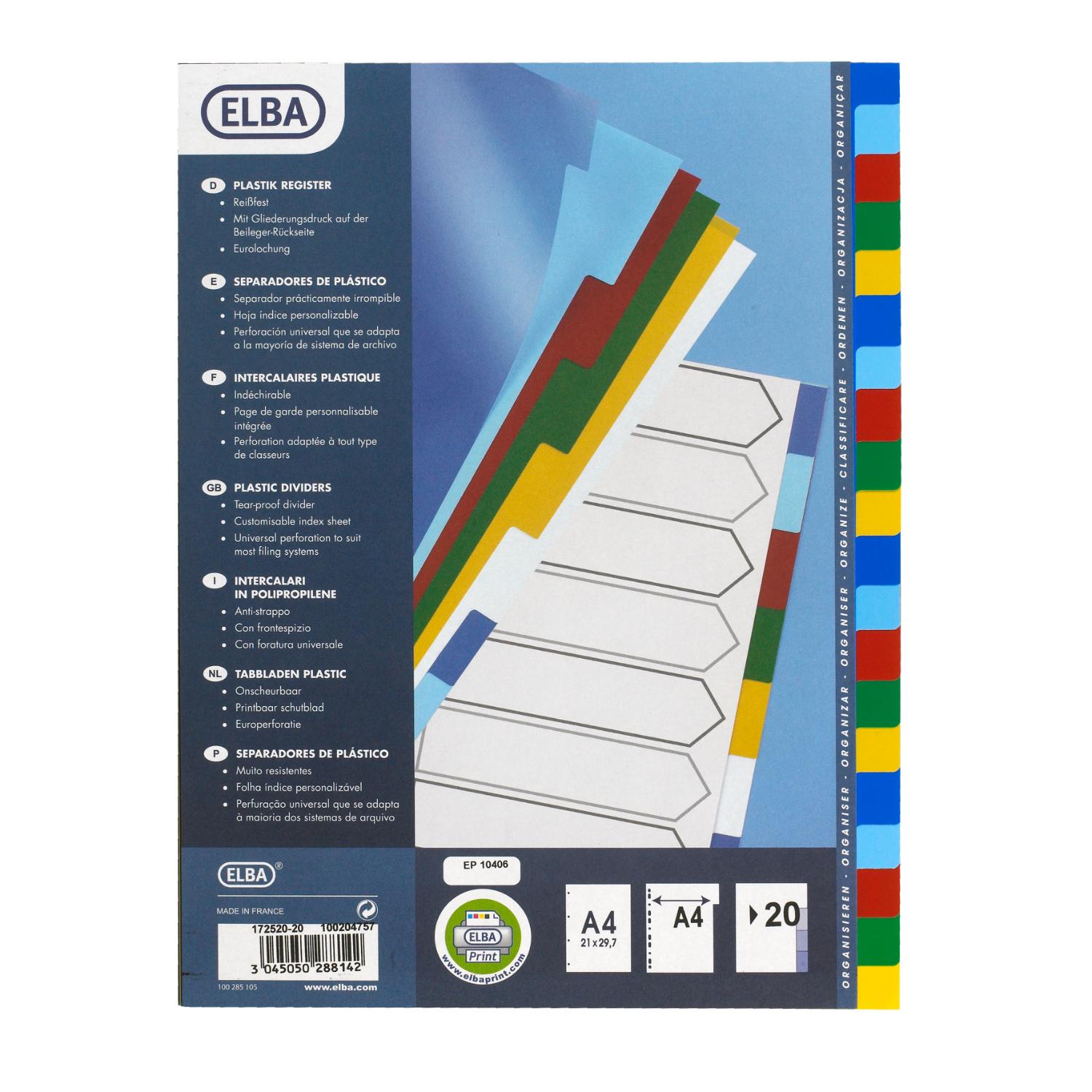 Lavet af robust 0,12 mm stærk polypropylenfolie. Utrykte faner. 20 faner. StrongLine® hulforstærkning.