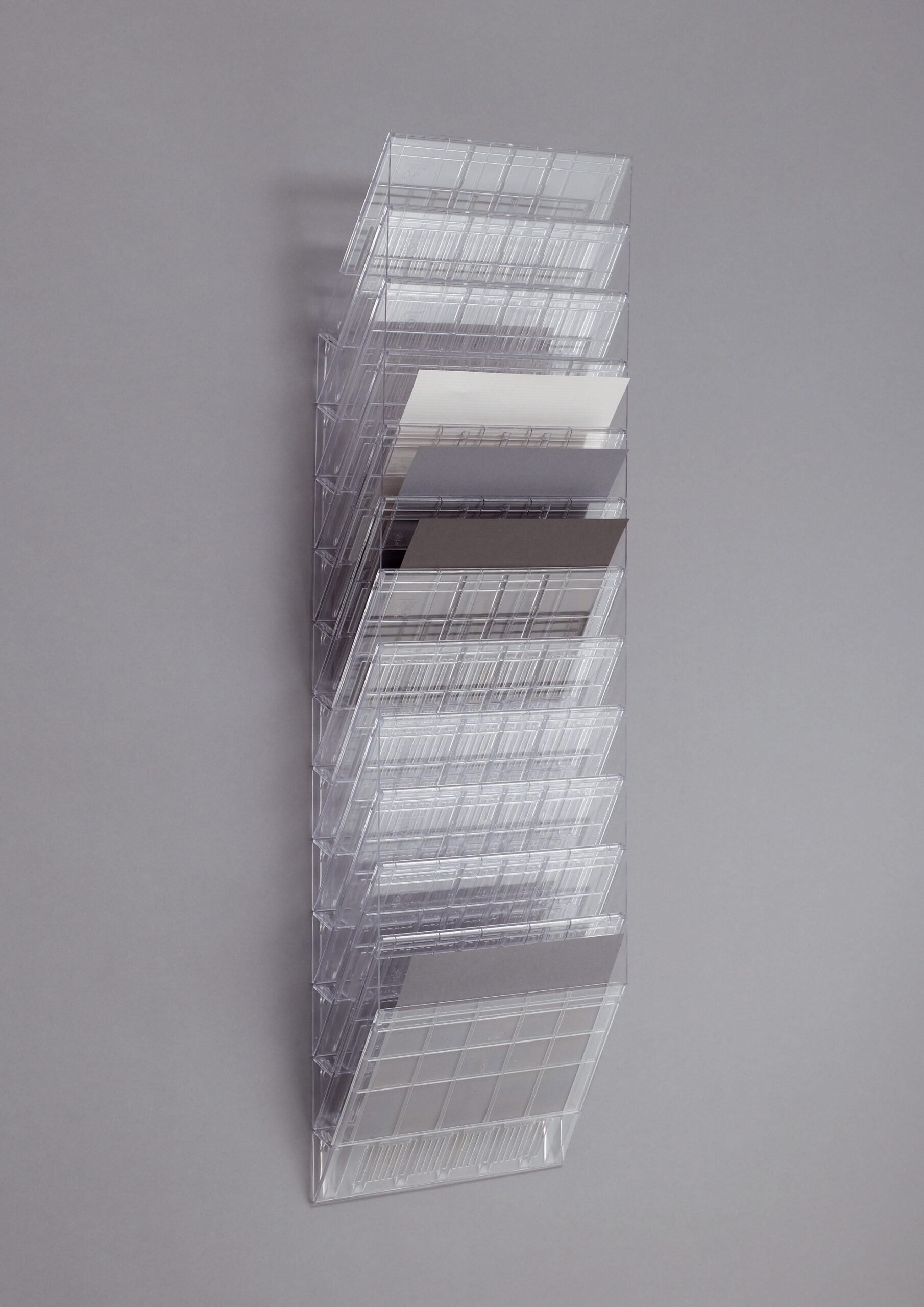 Flexiboxx 12 a4 tværBrochure og blanketholder for brochurer i A4 tværformat til vægmontering. Sæt med 12 bakker.