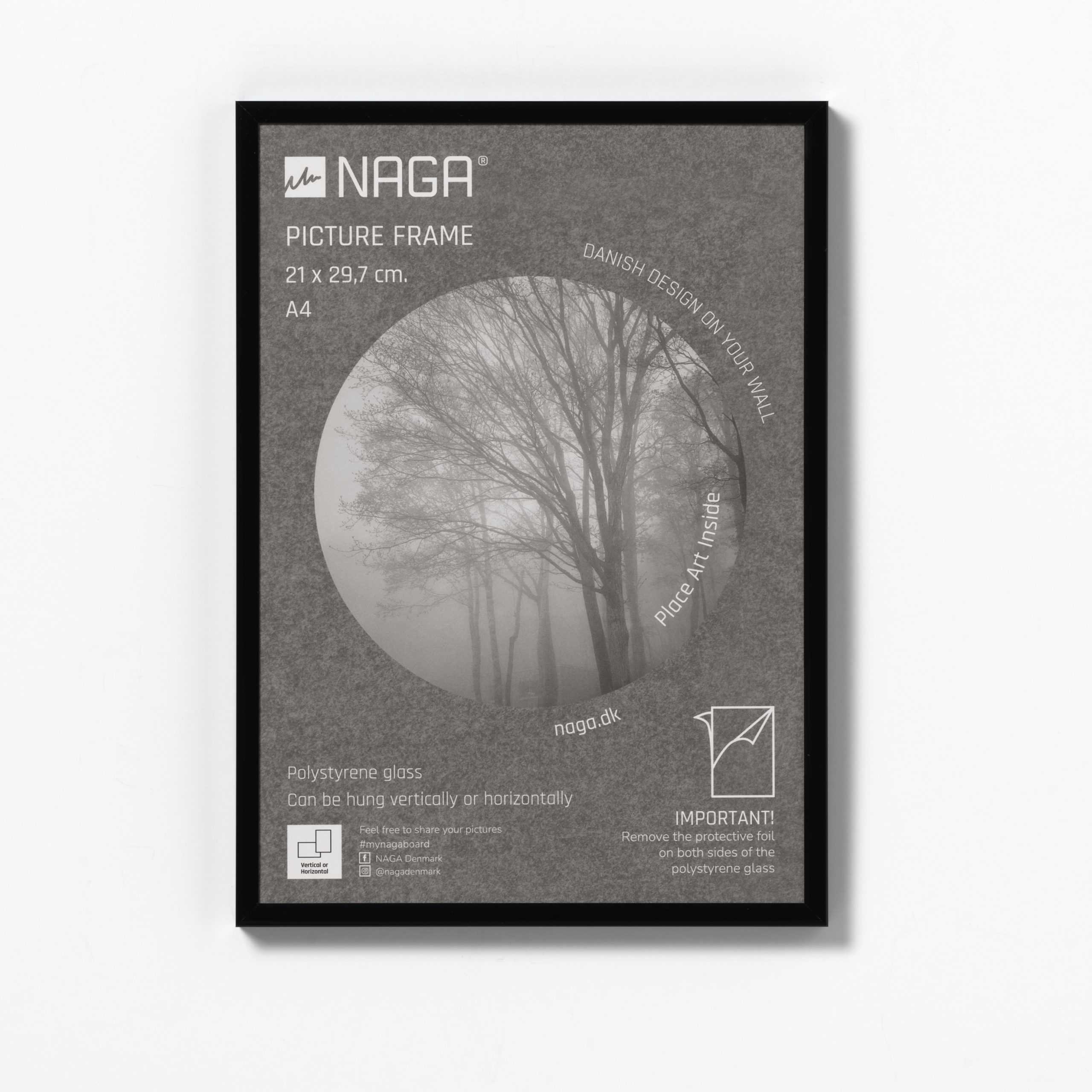 A4 sort billedramme i aluminiumStilfuld sort ramme til billeder med plexiglas udført i aluminium. Den flotte ramme passer til et billede på 21×29,7 cm, (hvad der svarer til en A4 plakat). Selve rammen måler 0,9 cm i bredden og 1,4 cm i dybden, hvilket giver et stilfuldt udtryk.Den fine ramme har metalophæng bagpå, så du nemt kan hænge den op. Rammen er udført så du både kan hænge den vertikalt og horisontalt, hvilket giver dig mulighed for at skabe den helt rette billedvæg.En flot sort ramme, som du kan få glæde af i mange år. Indram billeder eller kunst og skab et stilfuldt design på dine vægge.