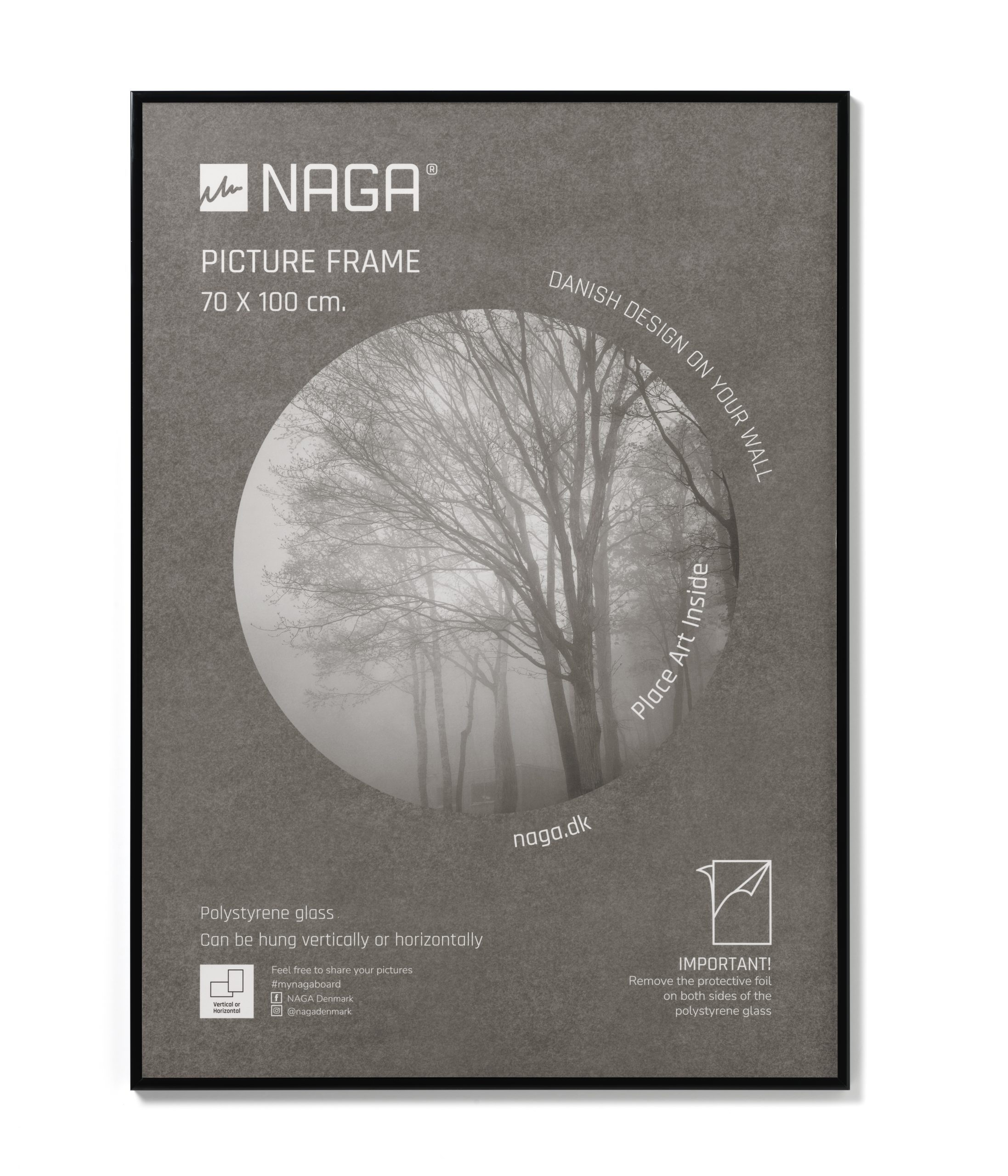 70 x 100 sort ramme til plakater i aluminiumStilfuld sort ramme til plakater med plexiglas udført i aluminium. Den flotte ramme passer til et billede på 70×100 cm. Selve rammen måler 0,9 cm i bredden og 1,4 cm i dybden, hvilket giver et stilfuldt udtryk.Den fine ramme har metalophæng bagpå, så du nemt kan hænge den op. Rammen er udført så du både kan hænge den vertikalt og horisontalt, hvilket giver dig mulighed for at skabe den helt rette billedvæg.En flot sort billedramme i en stor størrelse, som du kan få glæde af i mange år. Indram plakater og skab et stilfuldt design på dine vægge.