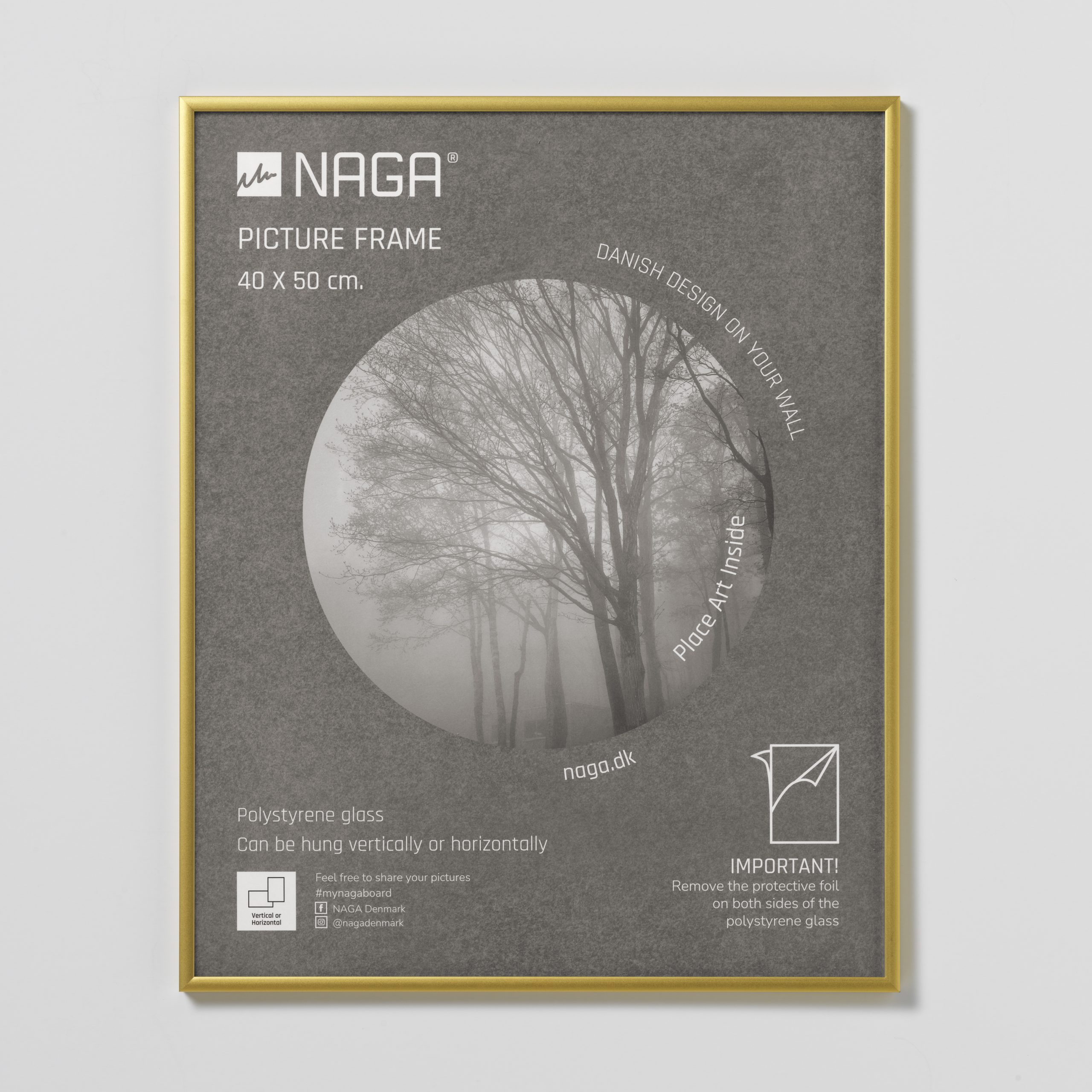 40×50 mat guld billedramme i aluminiumStilfuld mat guld ramme med plexiglas udført i aluminium. Den flotte ramme passer til et billede på 40×50 cm. Selve rammen måler 0,9 cm i bredden og 1,4 cm i dybden, hvilket giver den et stilfuldt udtryk.Den fine ramme har metalophæng bagpå, så du nemt kan hænge den op. Rammen er udført så du både kan hænge den vertikalt og horisontalt, hvilket giver dig mulighed for at skabe den perfekte billedvæg.En flot ramme, som du kan få glæde af i mange år. Indram billeder eller kunst og skab et stilfuldt design på dine vægge.