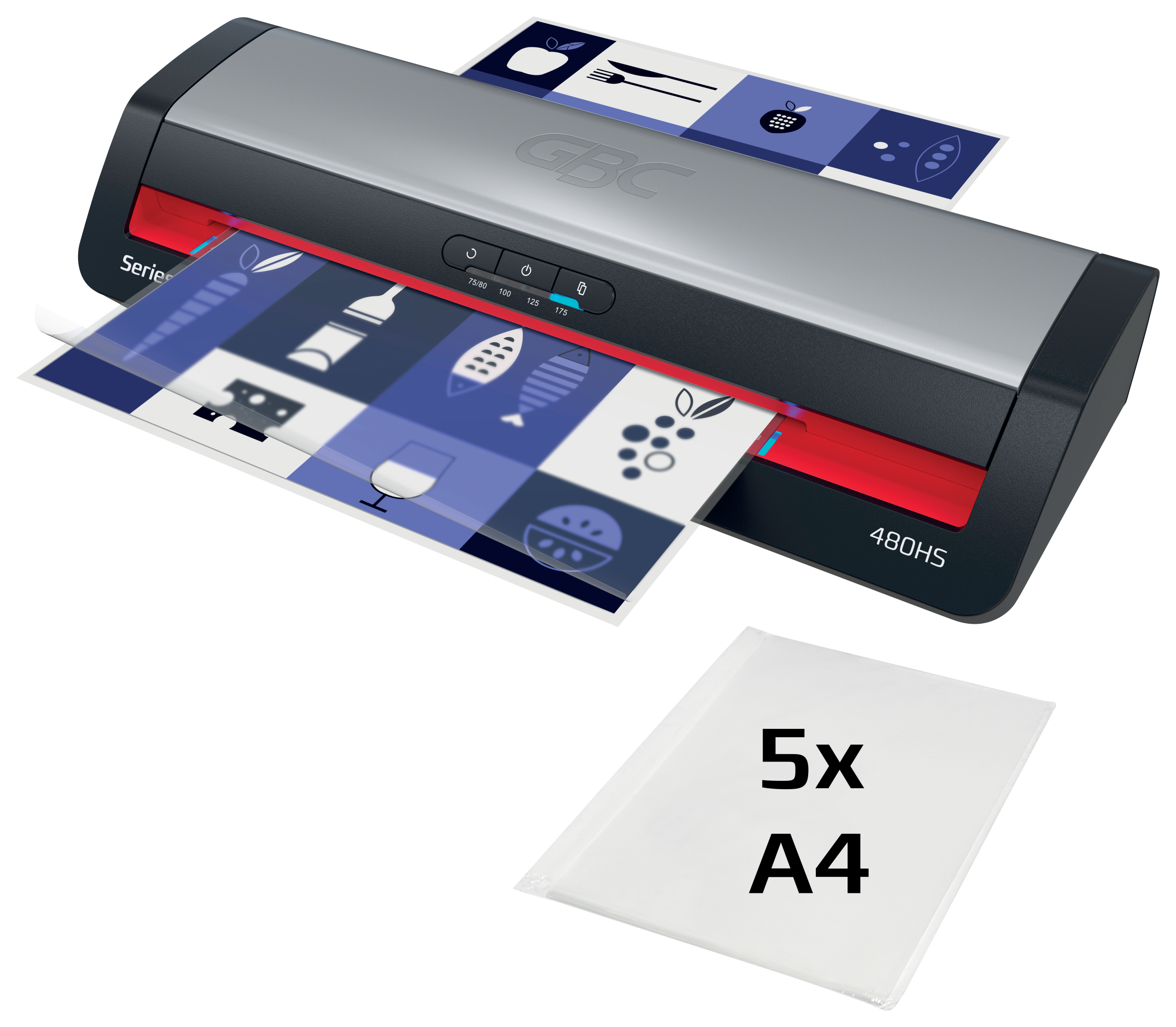 GBC 480HS A3-højhastigheds lamineringsmaskine leverer hurtig og pålidelig dokumentbeskyttelse, designet til travle kontormiljøer. Med en hurtig opvarmningstid på 1 minut og evnen til at laminere et 75-micron A4-ark på bare 23 sekunder sikrer den effektive resultater af høj kvalitet til alle dine professionelle lamineringsbehov.