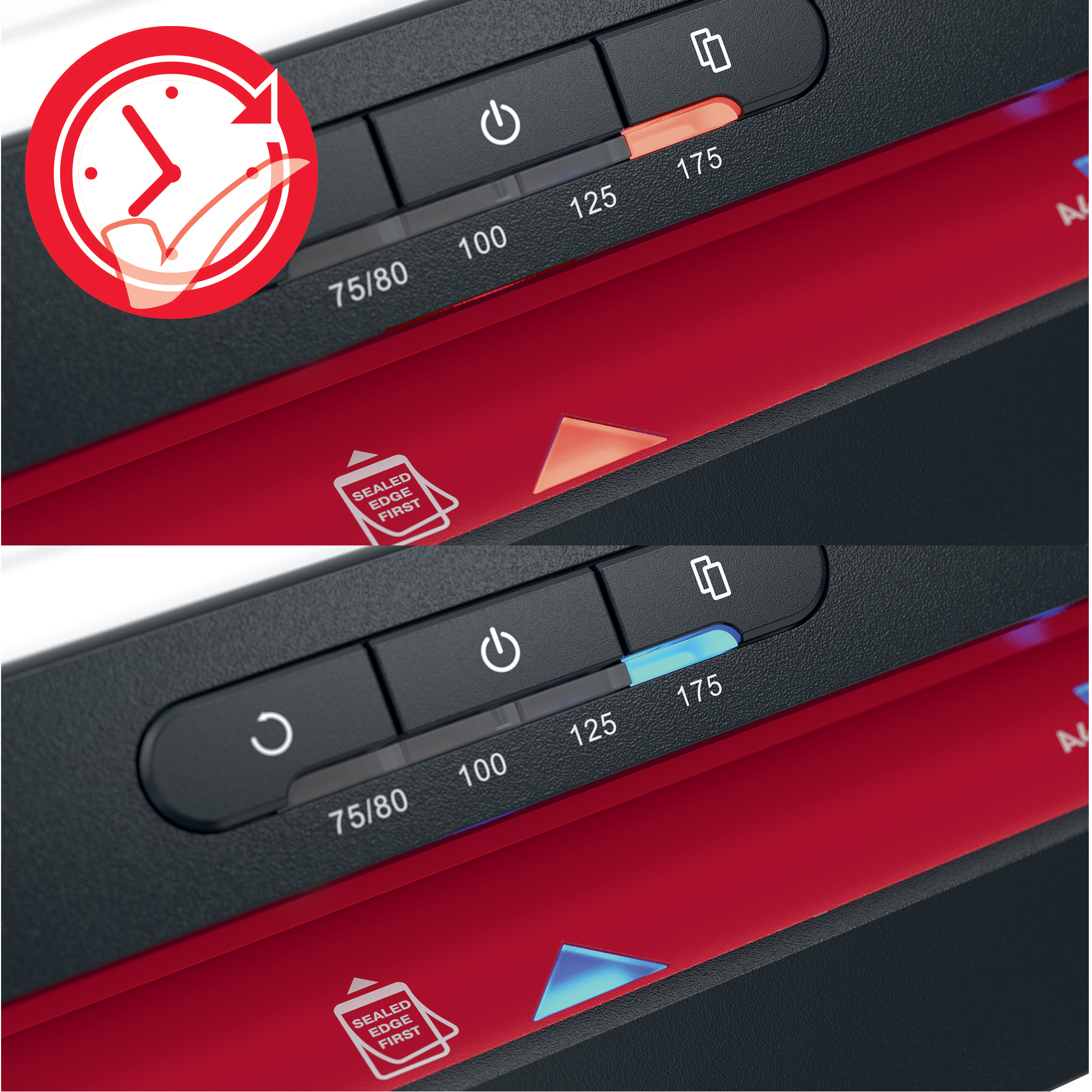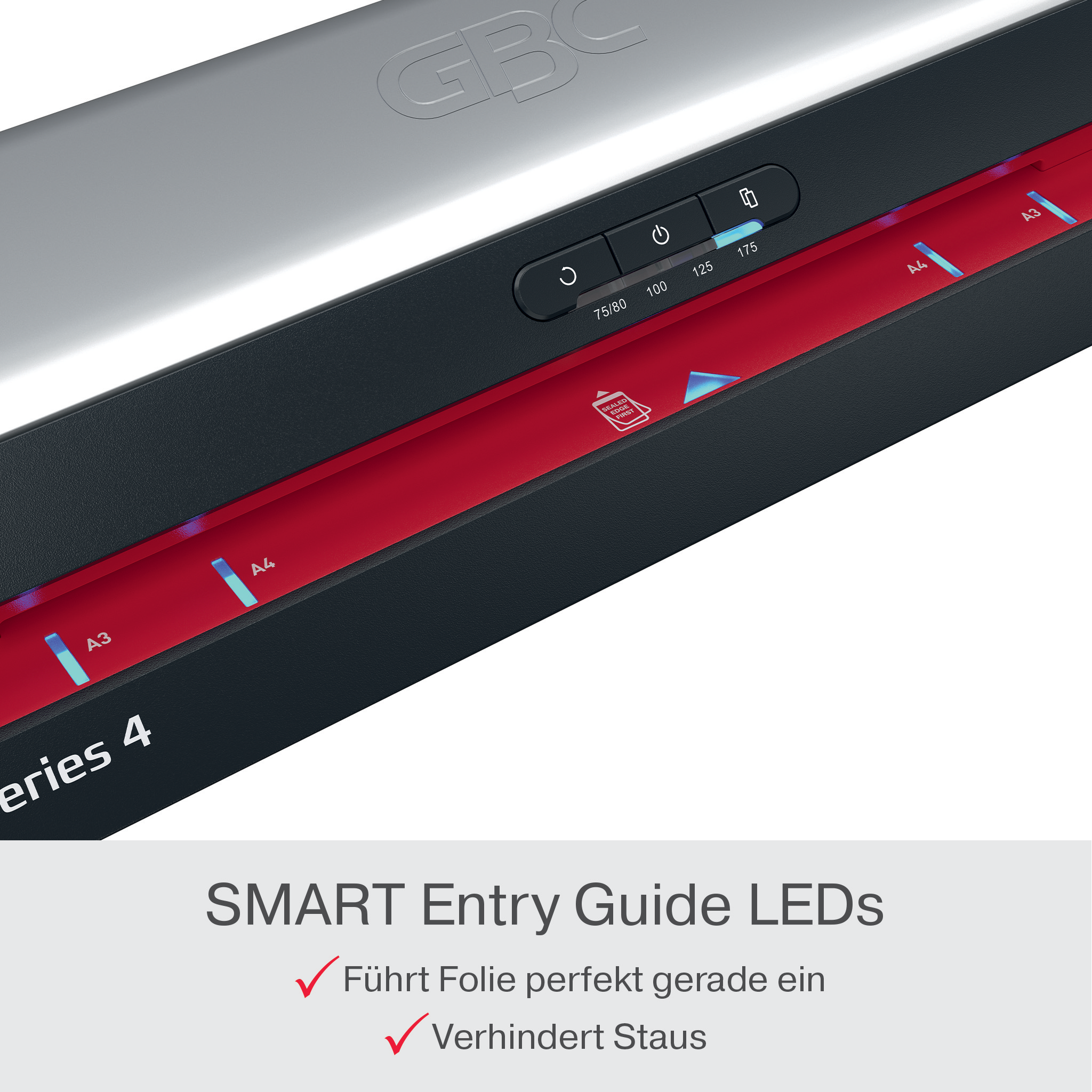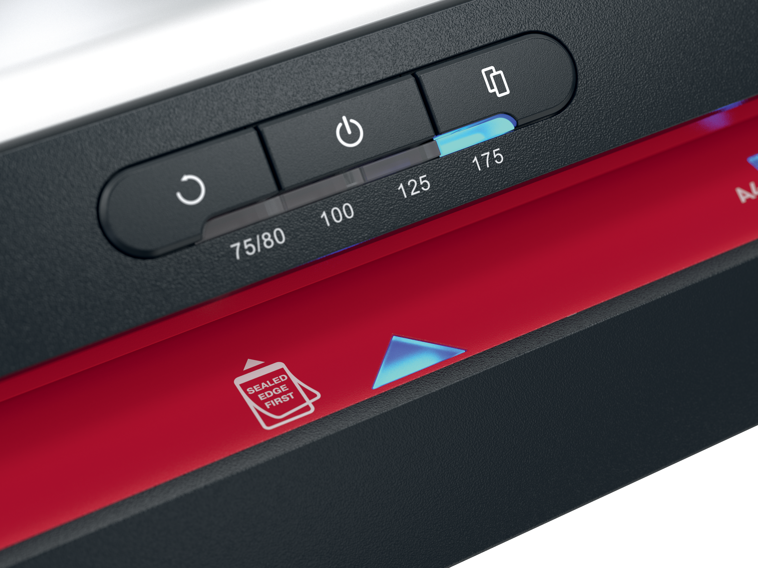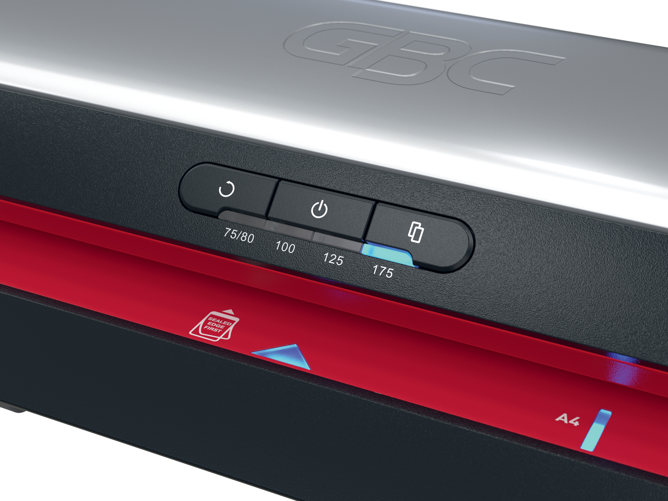 GBC 480HS A3 lamineringsmaskinen er en pålidelig og effektiv løsning til laminering af store mængder. Denne højhastigheds lamineringsmaskine er designet til professionelle miljøer og kombinerer ydeevne med brugervenlighed. Øg produktiviteten og reducer lamineringstiden med 30% ved hjælp af GBC’s high-speed lamineringslommer. Med en hurtig opvarmningstid på 1 minut laminerer den et 75-micron A4-ark på bare 23 sekunder, hvilket gør den ideel til hurtige kontoropgaver. Det intuitive kontrolpanel tilbyder fire indstillinger for lommetykkelse fra 75 til 175 microner, hvilket giver fleksibilitet til forskellige dokumenttyper. Panelet har også en manuel reverse-knap og en automatisk retur funktion med aktiv registrering af fastklemning for problemfri udtagning af lommer. Derudover giver SMART status LED-systemet klare visuelle og akustiske signaler: rød under opvarmning, blå med en lyd, når den er klar til brug, og en automatisk slukning efter 15 minutters inaktivitet for at spare energi. SMART entry guide LED-lys sikrer, at lamineringslommen justeres korrekt for at undgå papirstop, så hver eneste laminering bliver perfekt. Beskyt og bevar dine vigtige dokumenter hurtigt og med en jævn, professionel finish hver gang. Sort og rød farve.