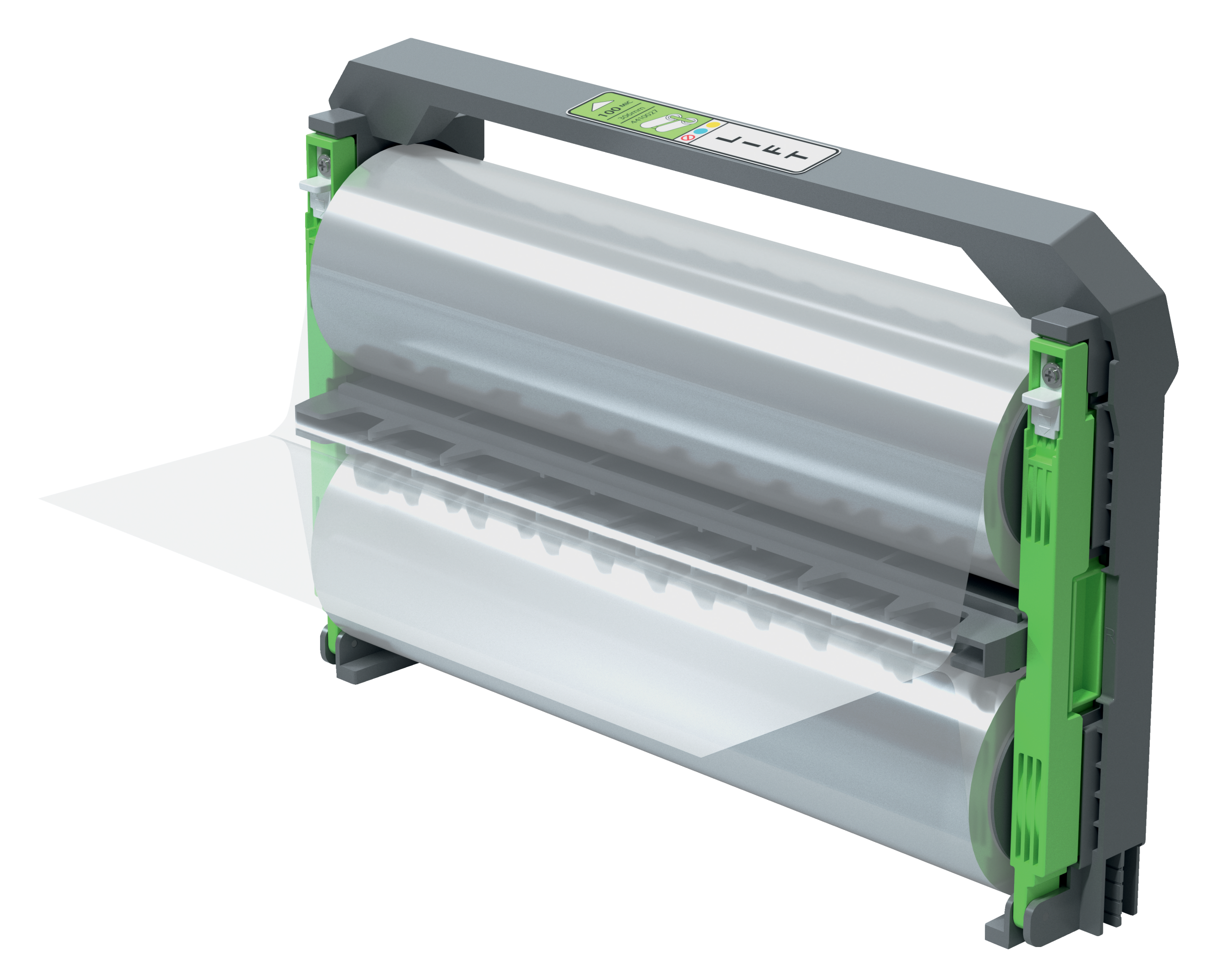Foton 30 genopfyldelig lamineringsfilmkassette med let isætning. Leveres med en 100 mikron lamineringsrulle, skinnende film. Laminerer op til 190 x A4 -ark.