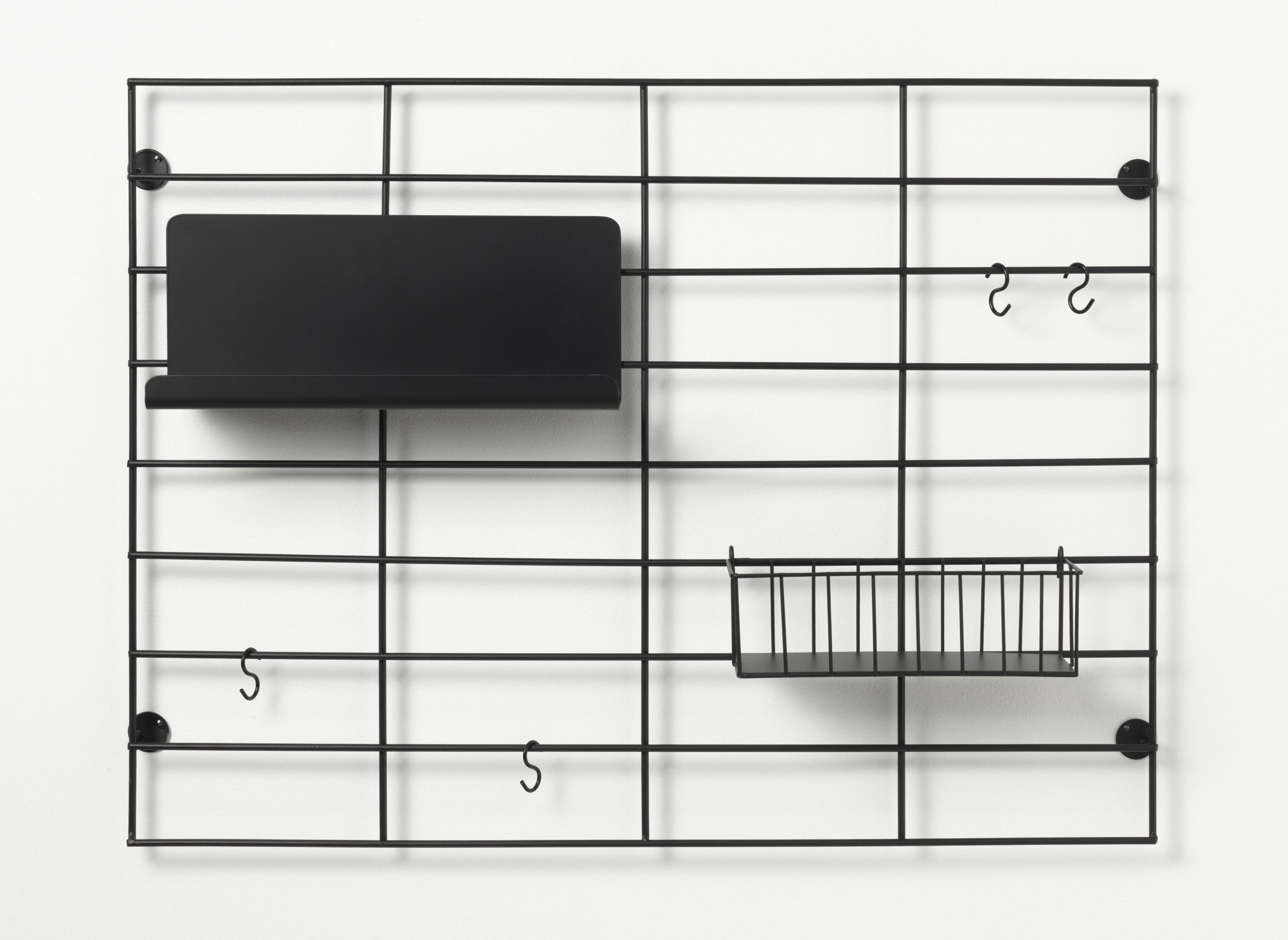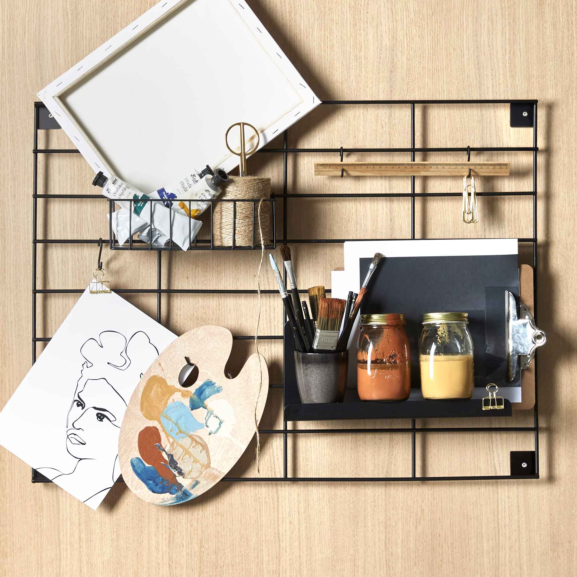 Gitteropslagstavle i sort metalDenne sorte gitteropslagstavle i metal er en praktisk og fleksibel løsning til at holde styr på dine småting. Den kan bruges som opslagstavle, opbevaring eller dekoration og passer godt ind i hjemmekontoret, køkkenet, entreen eller hobbyrummet. Tavlens enkle gitterstruktur gør det let at hænge ting op, som du gerne vil have lige ved hånden, f.eks. værktøj, køkkenredskaber, hobbyartikler, billeder eller accessories. Du kan nemt flytte rundt på tilbehøret, så tavlen altid passer til dine behov.Gitteropslagstavlen er lavet af metal og har en sort, mat finish, der giver et moderne og lidt industrielt udtryk. Det er både holdbart og let at holde rent. Tavlen monteres nemt på væggen med en skrue i hvert hjørne. Tavlen måler 60 x 80 cm.Tilbehør medfølger ikke, men kan tilkøbes separat: Hylde til gitteropslagstavle Kurv til gitteropslagstavle Penneholder til gitteropslagstavle S-kroge