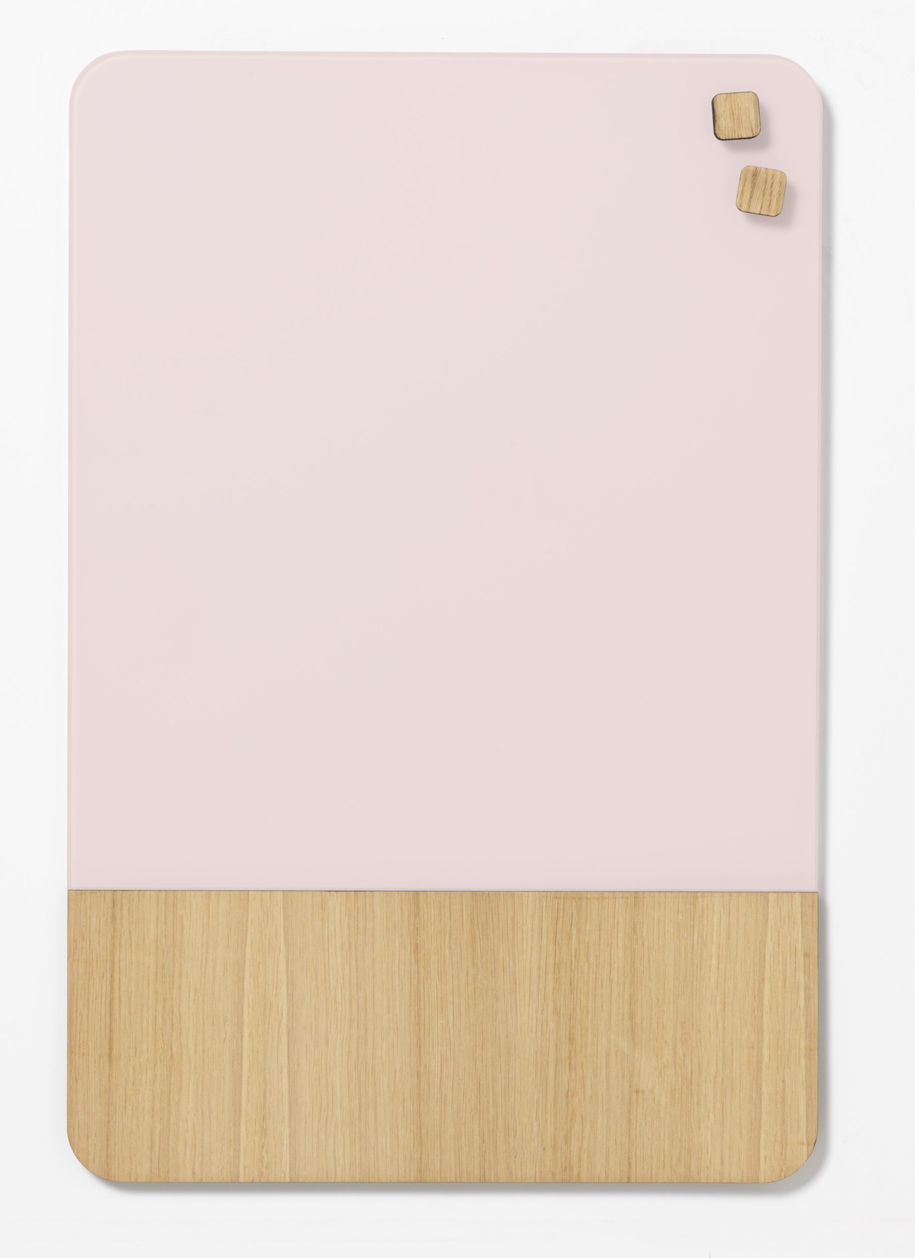 40 x 60 cm. Glass Light Pink/Oak veneer Magnetic board