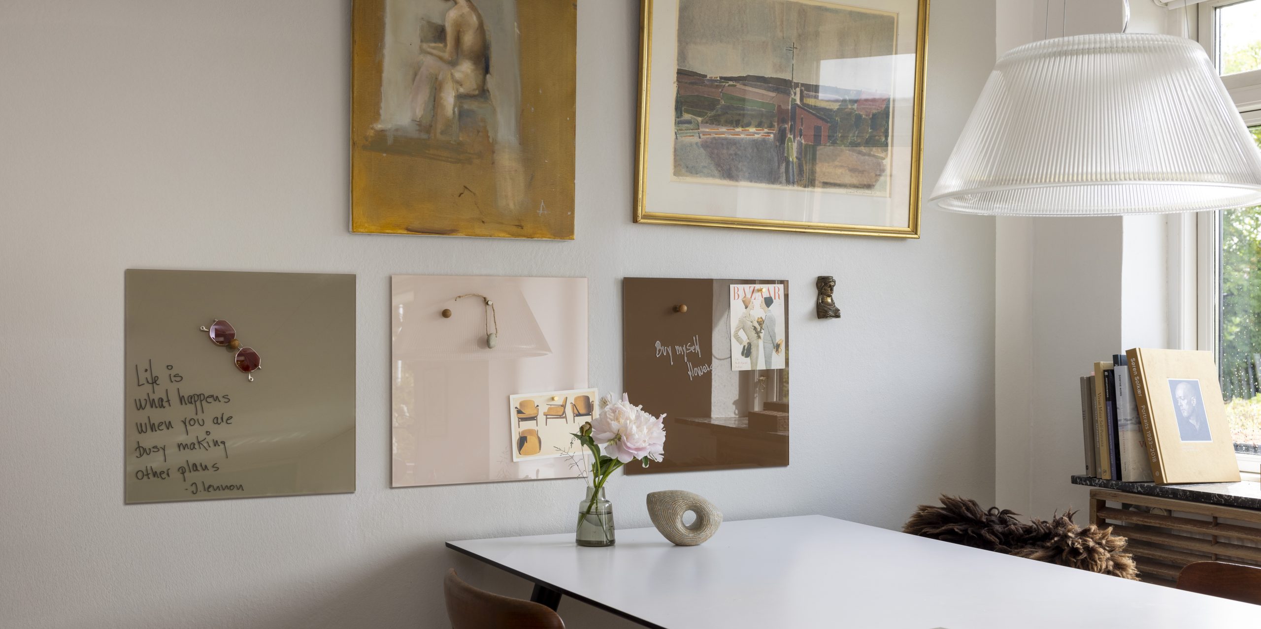 Brun Magnetisk Glastavle 45 x 45 cm. En magnetisk glastavle kan bruges som opslagstavle ved brug af stærke magneter. Glasset giver et elegant udtryk og er samtidig en praktisk vægdekoration. Denne brune glastavle måler 45 x 45 cm. Bemærk! Kun super stærke magneter kan bruges på glastavlen. Magneter medfølger ikke. Alle NAGA glastavler kræver kraftige neodym magneter, da magneten skal nå igennem glasset til metallaget på bagsiden af tavlen. Skriv på glasset med en kridt marker, eller med en almindelig whiteboard marker. Når teksten er tør, kan den nemt viskes ud igen med en tavlesvamp eller en tør klud. Til grundig rengøring skal du bruge tavlerens eller almindeligt glaspudsemiddel og en blød klud. Det er vigtigt, at du bruger en blød klud for at undgå at ridse glasset. Tavletilbehør kan tilkøbes separat. Ophæng: Der medfølger skruer og rawlplugs samt en boreskabelon. Tavlen har huller i hvert hjørne på bagsiden, så den nemt kan monteres på væggen. Se monteringsvejledning under vejledninger.