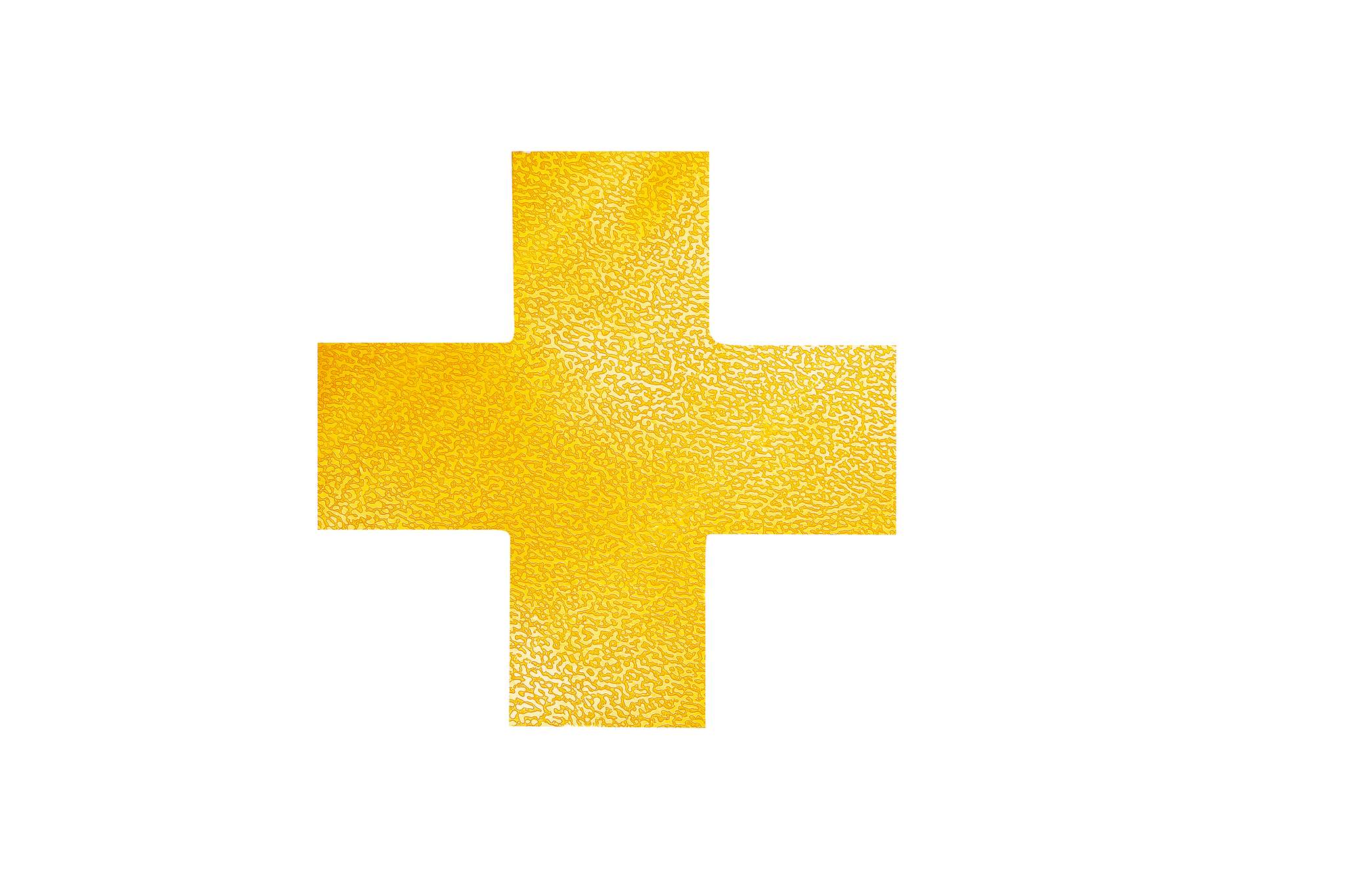 Gulvmarkering til identifikation af farlige områder, opbevaringsrum,gangbroer m.m. Selvklæbende permanent gulvmarkering “Kryds” til påsætning på indendørs gulve. Slidstærk og hårdfør. Skridsikring R9 i henhold til DIN 51130. Farve: RAL 1003 signalgul. Mål ( B x H x L ) 150 mm x 0,7mm x 150 mm