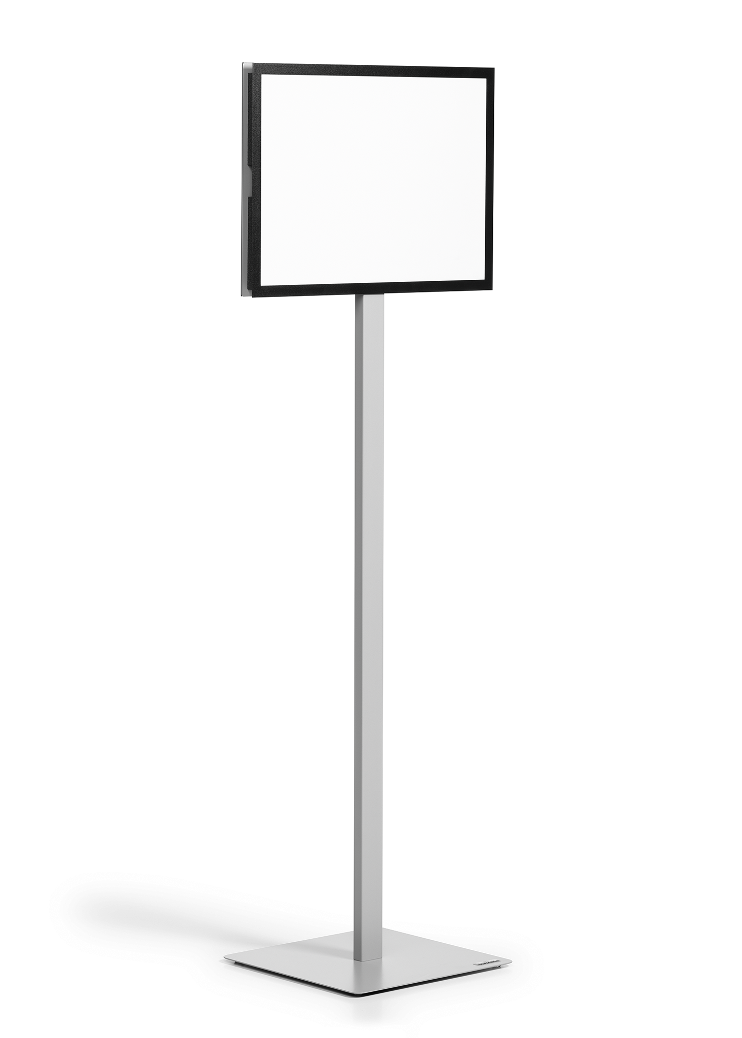 INFO STAND BASIC gulvstandere er velegnede til både præsentation af oplysninger og kan bruges som vejledningssystem på grund af deres dobbeltsidede læsbarhed. Nem ændring af information på grund af to magnetisk fastsiddende info-rammer DURAFRAME® MAGNETIC, som er fastgjort til metalpladerne. Høj stabilitet på grund af en højkvalitets standerprofil og en vægtet base med fire gummifødder Innovativ mekanisme muliggør let vending fra stående til liggende format uden værktøjer Informationsstanden er ideel til receptioner, messer, lobbyer og venteværelser – DURAFRAME® MAGNETIC-inforamme fås som tilbehør i forskellige farver Gratis download af skabeloner på www.duraprint.dk Monteringssæt og vejledning medfølger Mål stående: 1402 x 323 x 305 mm, mål liggende: 1301 x 446 x 305 mm (H x B x L)