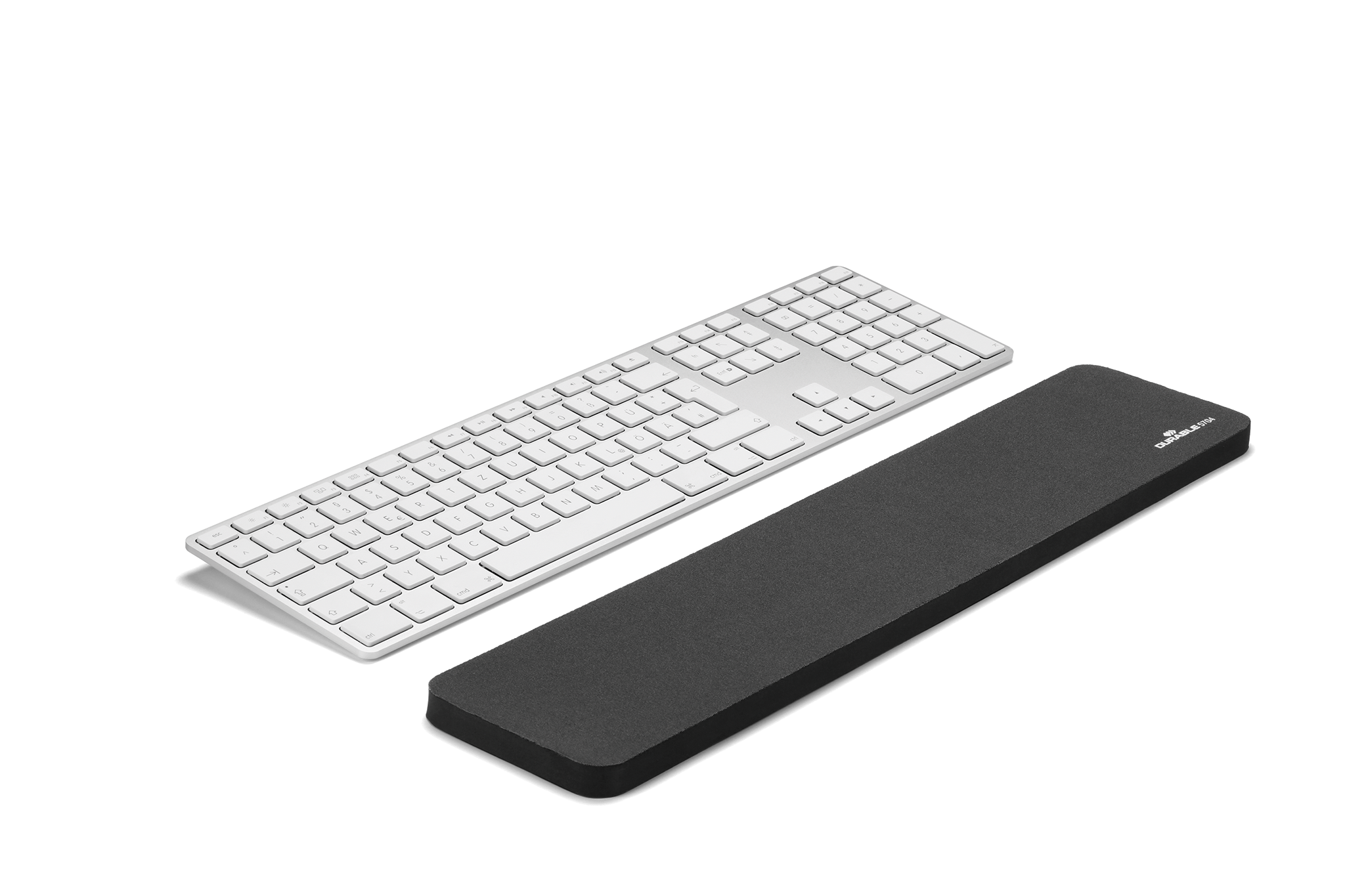 Aflastende håndledsstøtte af skumgummi med tekstil og anti-slip underside. Dimensioner: 450 x 15 x 100 mm ( BxHxD)