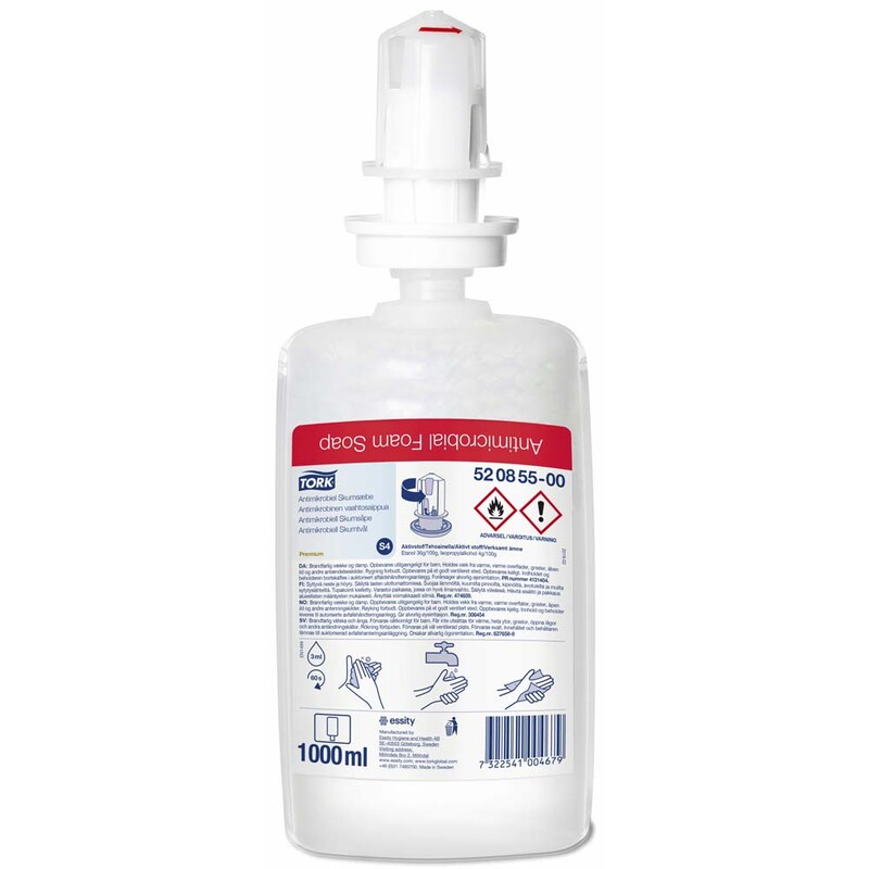 Med denne EN 1499 certificeret Tork Antimikrobiel Skumsæbe både rengør og desinficerer du dine hænder på samme tid. Håndsæben er lavet med et lavt indhold af alkohol og er særdeles effektiv mod bakterier, virus og svampe. Den er desuden uden parfume og farve, hvilket mindsker risikoen for allergiske reaktioner.