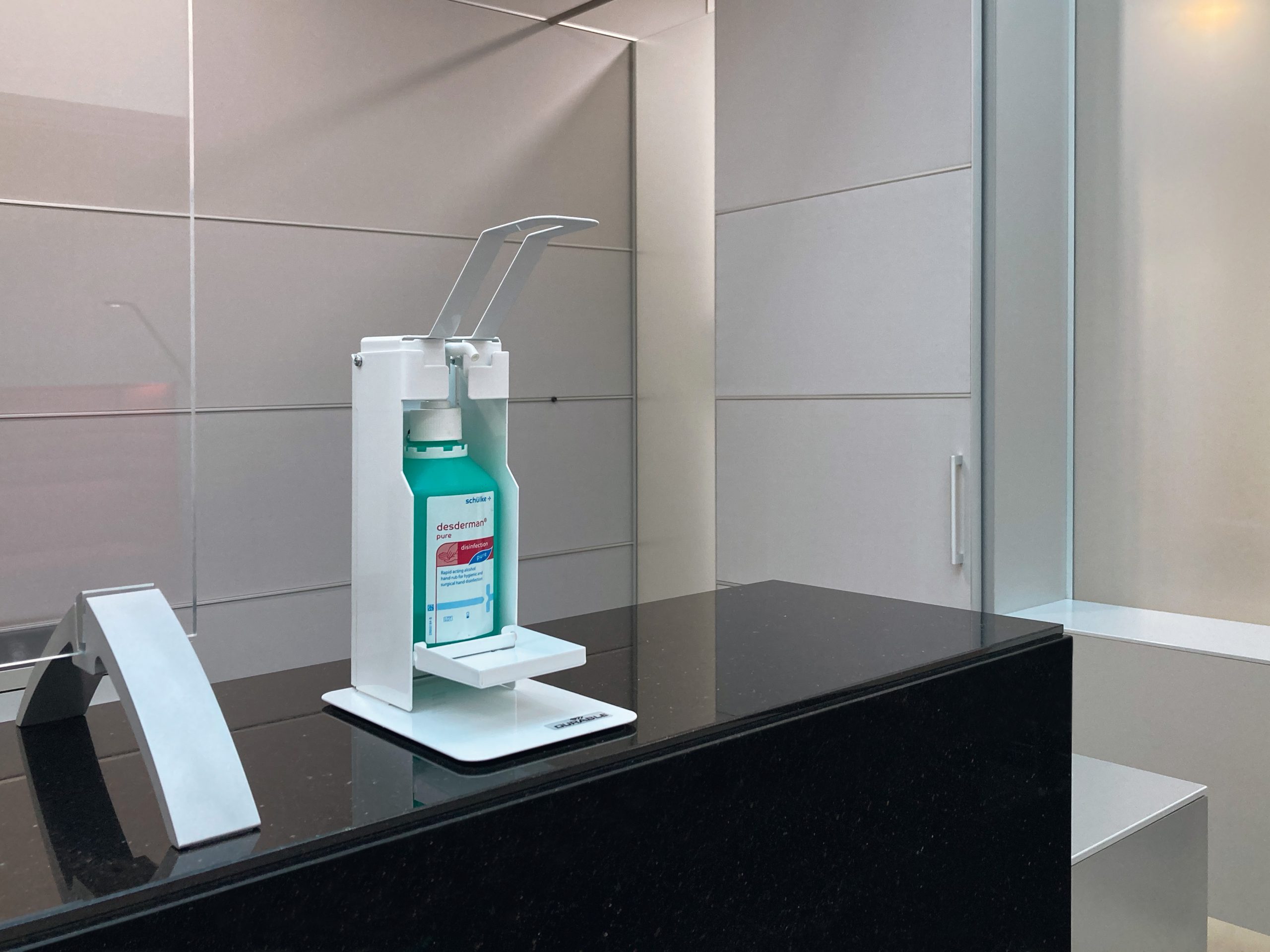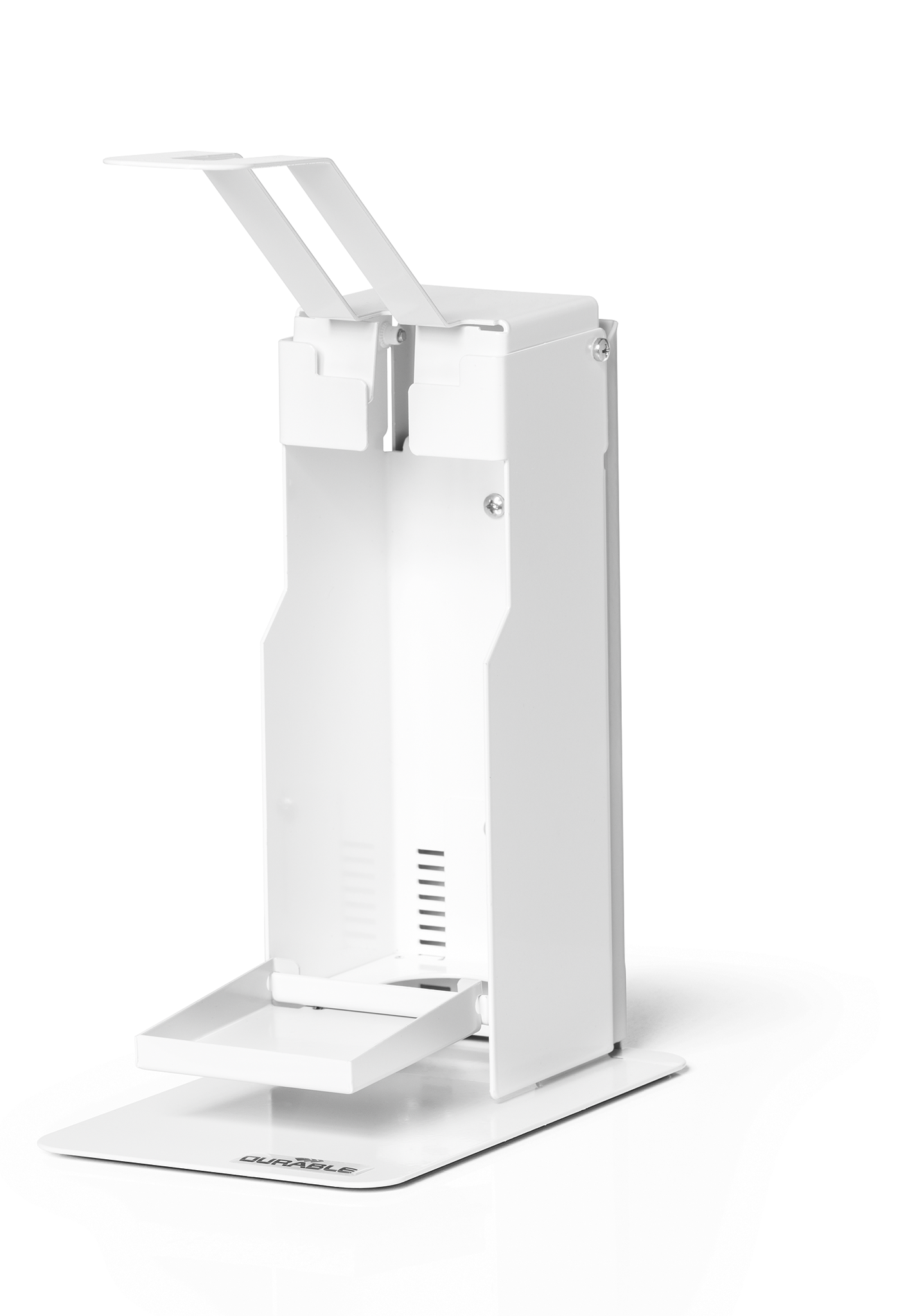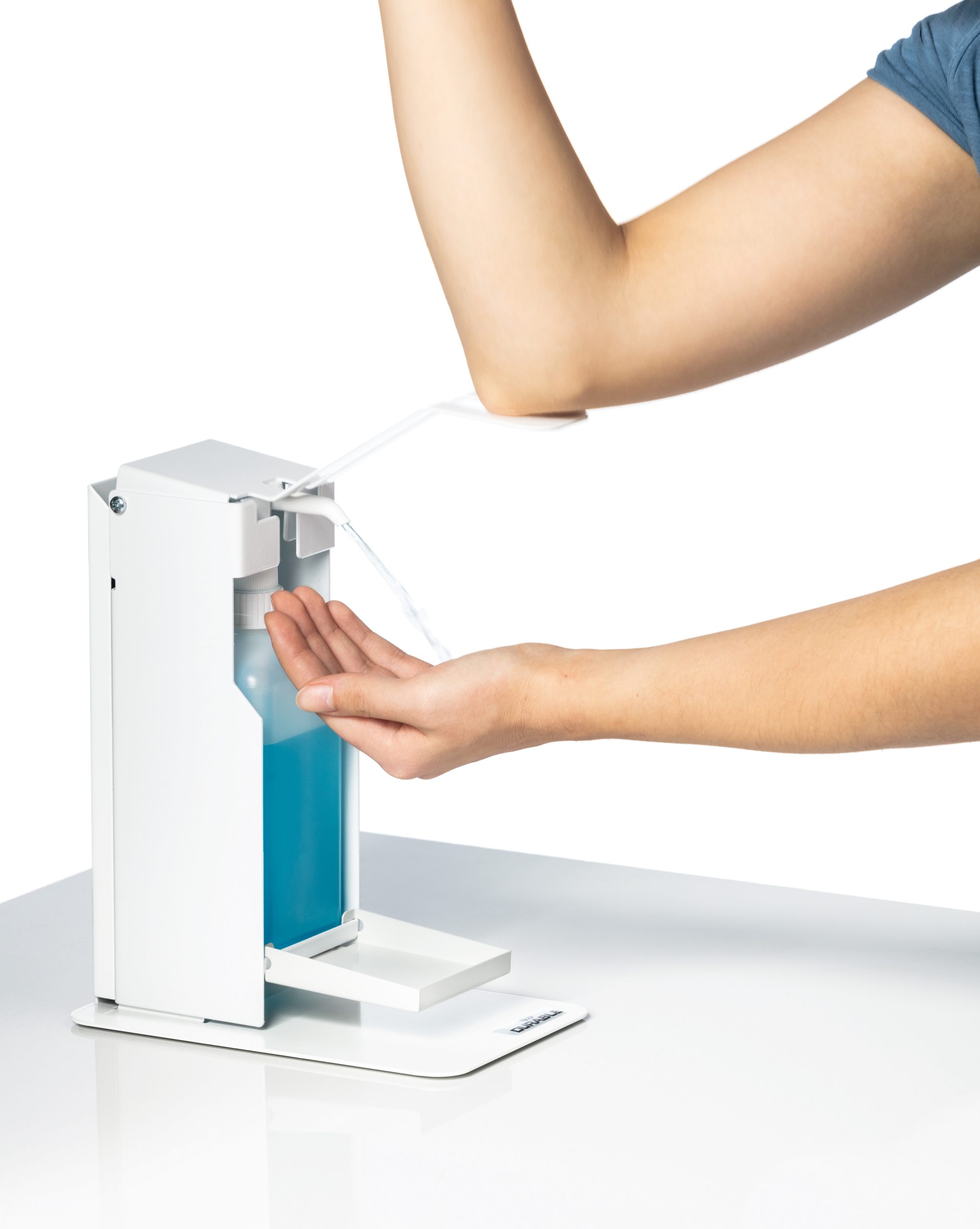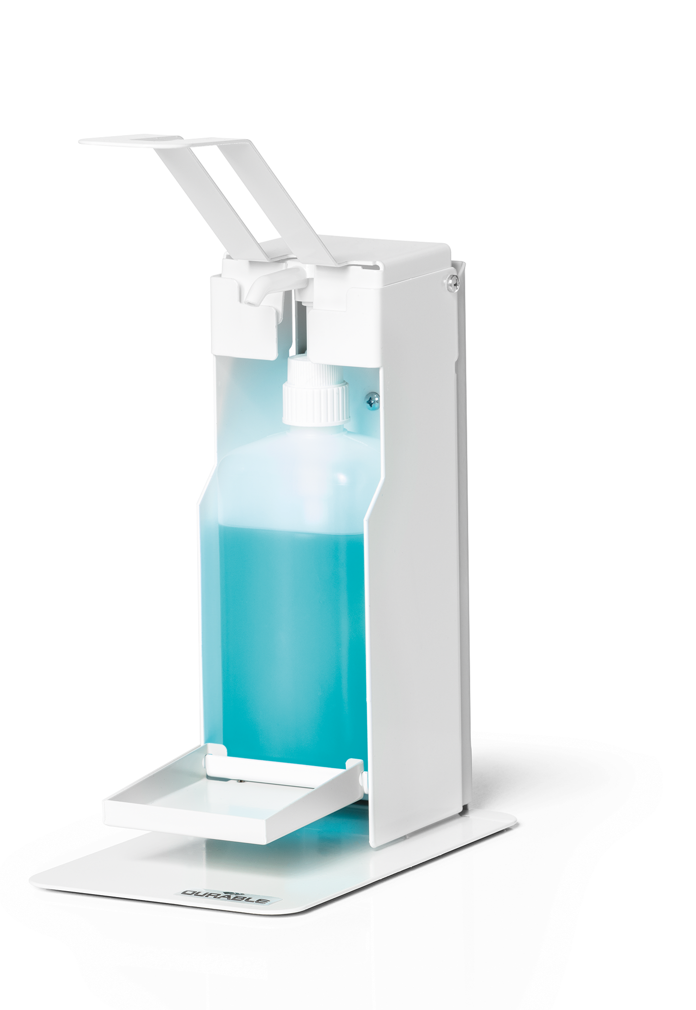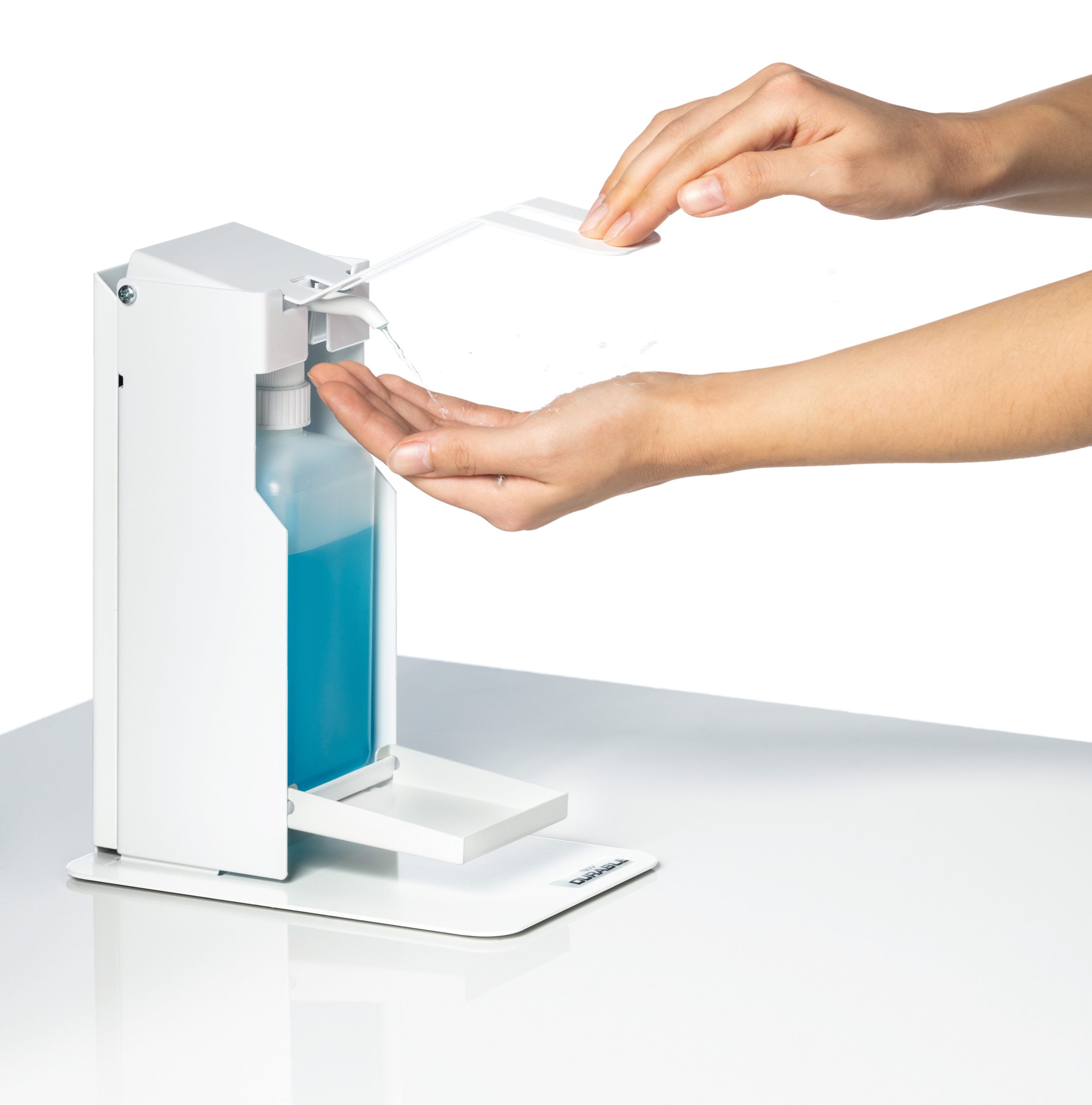 Desinfektionsstandere er en integreret del af beskyttelses- og hygiejnekoncepter inden for rammerne af infektionskontrol. Uanset om det er på arbejde, shopping, sport eller hos lægen: DURABLE desinfektionsstande er nemme at betjene takket være armhåndtag og kan bruges på mange måder som mobile hygiejnestationer. • Robust håndsprit dispenser af høj kvalitet med drypbakke til desinfektionsmiddel til at stille på bordet • Med en lang armhåndtag til hygiejnisk betjening i hånden, underarmen eller albuen • Fleksibel flaskehøjdejustering til forskellige flaskestørrelser op til 235 mm • Indeholder standard desinfektionsflasker med pumpe dispenser op til 500 ml • Pulverlakeret stål i høj kvalitet med lang holdbarhed • Inkl. monteringssæt og monteringsvejledning • Desinfektionsflaske og pumpeanordning ikke inkluderet • Dimensioner: 130 x 435 x 227 mm (B x H x D) FAQ: Er beholderen forsynet med håndsprit eller et andet desinfektionsmiddel? Nej, det skal købes separat Er der inkluderet en tom flaske med pumpesystem? Nej, det skal købes separat Er holderen egnet til flasker i forskellige størrelser? Ja, holderen kan justeres i højden (maks. Højdeflaske: 235 mm). Hvilke flasker passer i holderen? Holderen er egnet til flasker på 500 ml (Euro-flasker) med eget pumpesystem. Flasker med et andet indhold er egnede, forudsat at de opfylder følgende dimensioner: maks. Dybde 75 mm, maks. Bredde 70 mm, min. Højde 185 mm, maks. Højde 235 mm