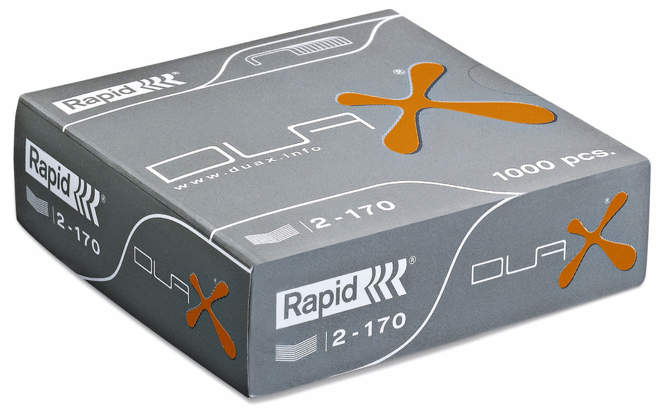 Æske med 1000 stk. hæfteklammer til Rapid Duax.