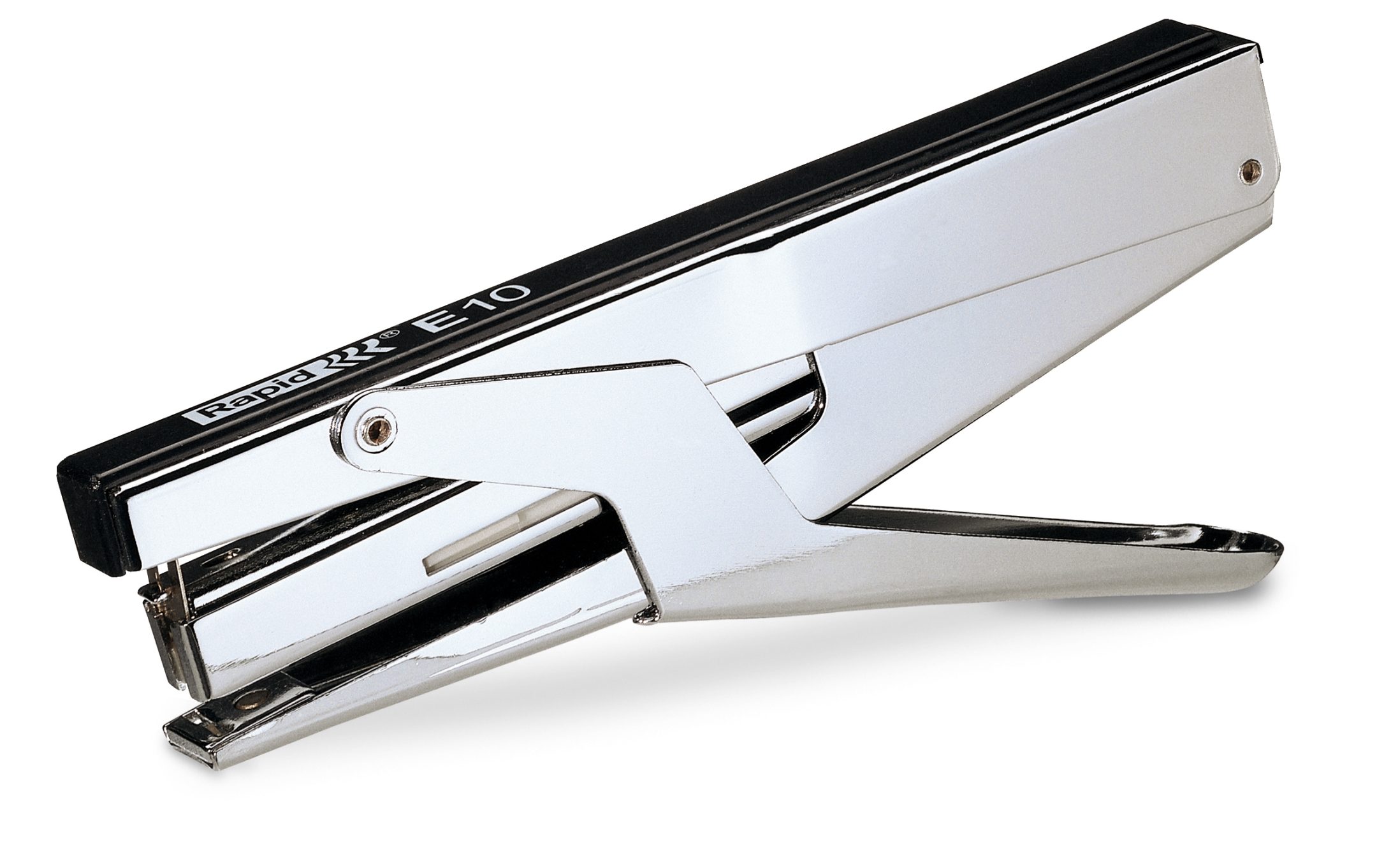 Rapid E10 er en kompakt hæftetang i stål, der kan hæfte op til 15 80g ark af gangen. Hæftetangen har en indstiksdybde på 50 mm, så du kan hæfte længere inde på papiret, hvis du har behov for det.