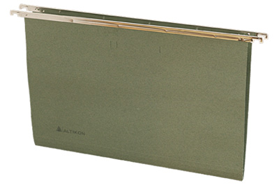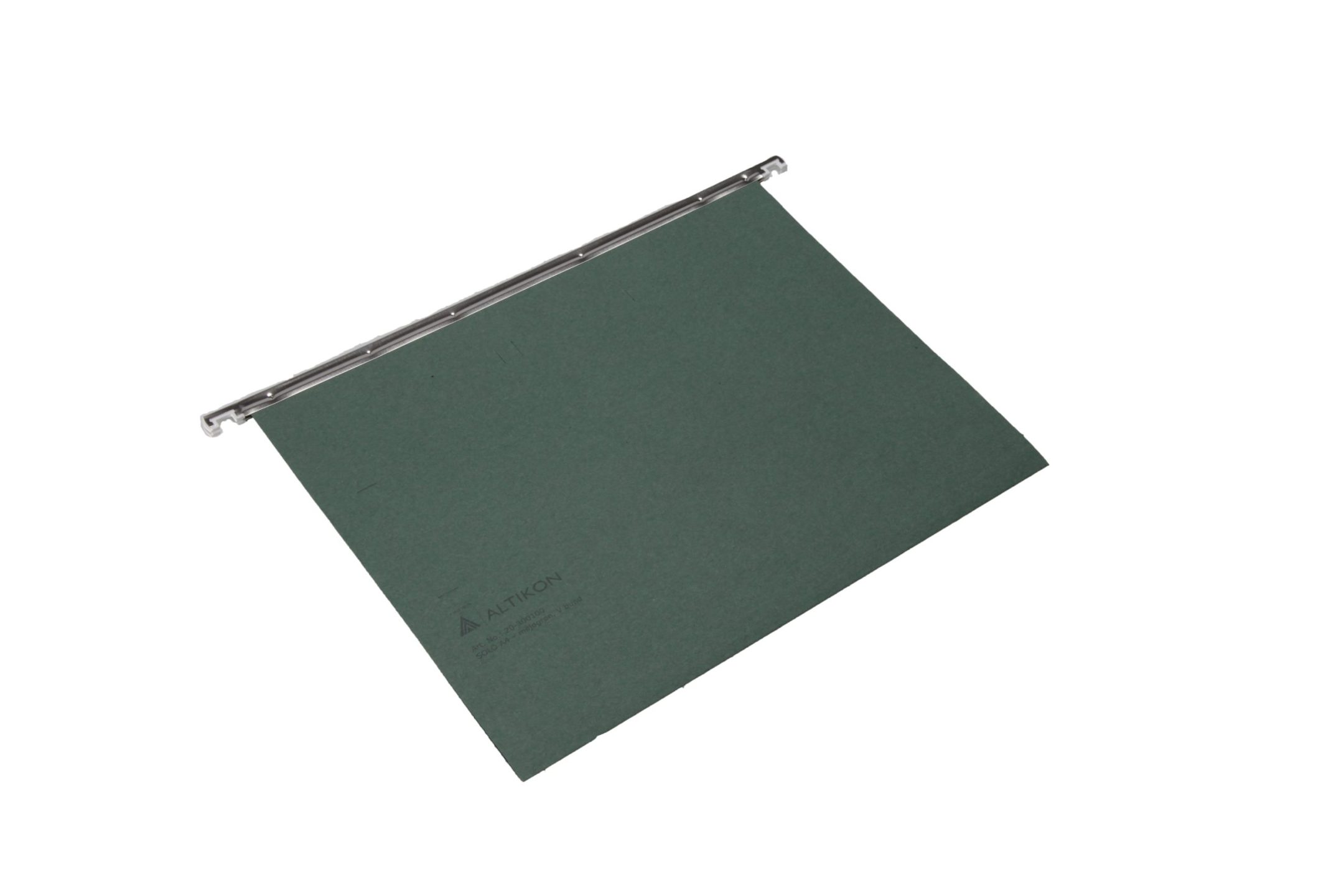 Klassisk grøn hængemappe til dine A4 dokumenter. Mappen har en metalskinne foroven, hvor du også har mulighed for at påsætte en indstik-fane.