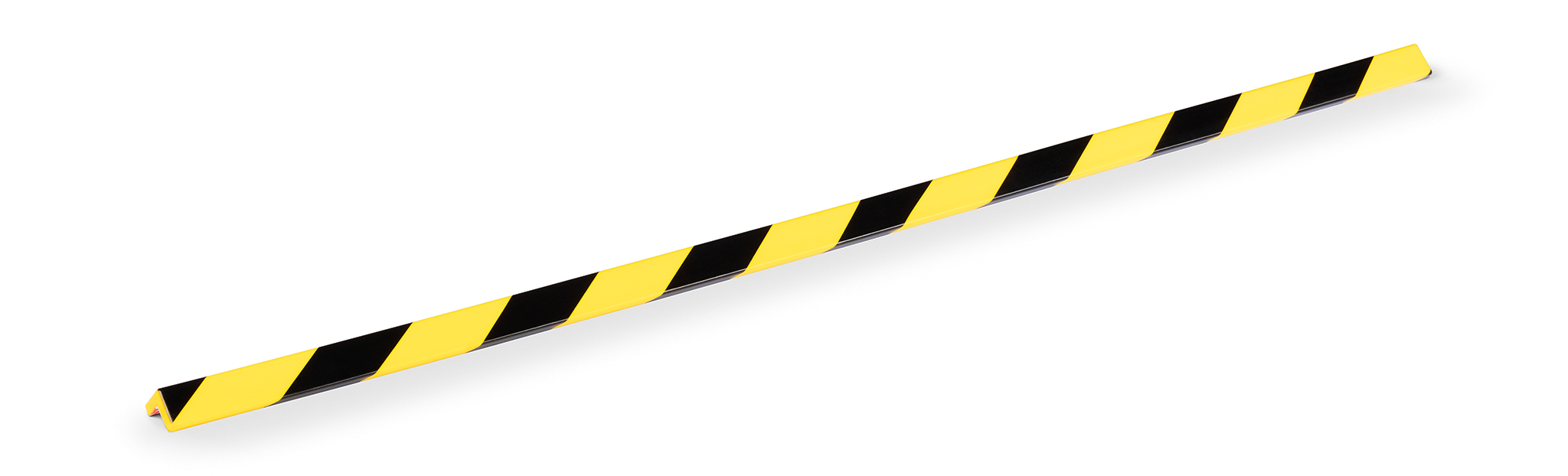 Advarsels- og beskyttelsesprofiler som denne hjørnebeskyttelse anvendes i industrier og andre indendørs miljøer til at beskytte personer, køretøjer og møbler i tilfælde af mindre kollisioner. De sort/gule striber advarer mod skarpe hjørner, og polyuretanskummet, som beskyttelsesprofilen er fremstillet af, er stødabsorberende. Den selvklæbende hjørnebeskytter skæres til i den ønskede længde med en skarp kniv. Stærk, selvklæbende overflade af god kvalitet, der klæber på metal, træ, pap og fliser med bedste resultat ved temperaturer på 10-30 °C. Farvenuancer i henhold til ASR A1.3 svarende til RAL 1004/9003 (signalgul/signal-sort). Testet i henhold til brandklassificering DIN EN 13501-1 klasse E. Temperaturbestandig fra -30°C – + 70°C. Længde 1 m. Udvendig længde 26 + 26 mm, længde af klæbeflade 20 + 20 mm, tykkelse 5 mm.