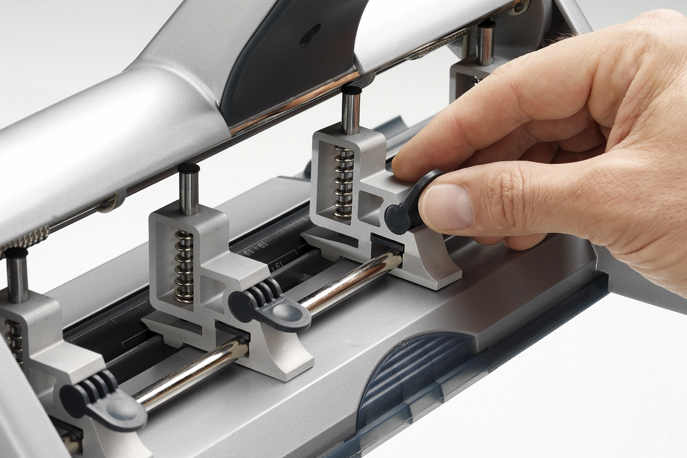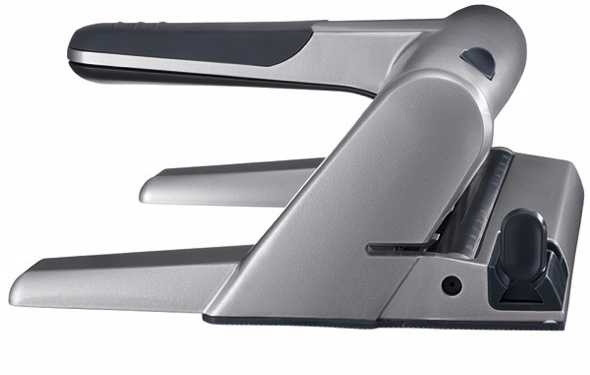Leitz 5114 er en fleksibel hulmaskine med justerbare hugpiber og en papirguide der kan indstilles til 13 forskellige papirstørrelser, helt op til A2. Hulmaskinen kan hulle op til 30 ark papir af gangen.