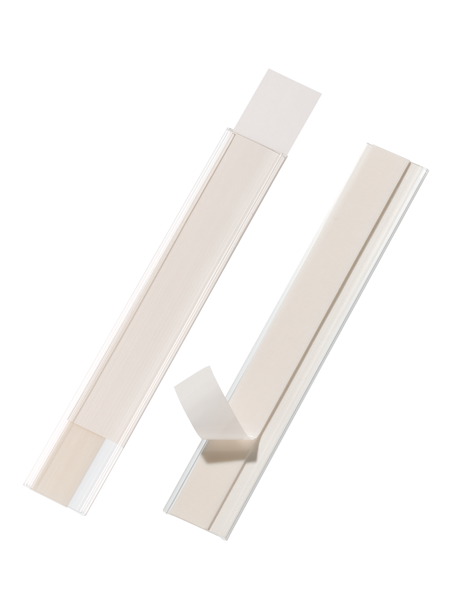 Hyldeforkant scanfix® 1000 x 30 mm selvklæbendeSelvklæbende, scanbar etiketholder til mærkning af f.eks. hyldeforkanter. Åben i toppen og i siden. Skrivehøjde 2,7 cm, længde 1 meter.