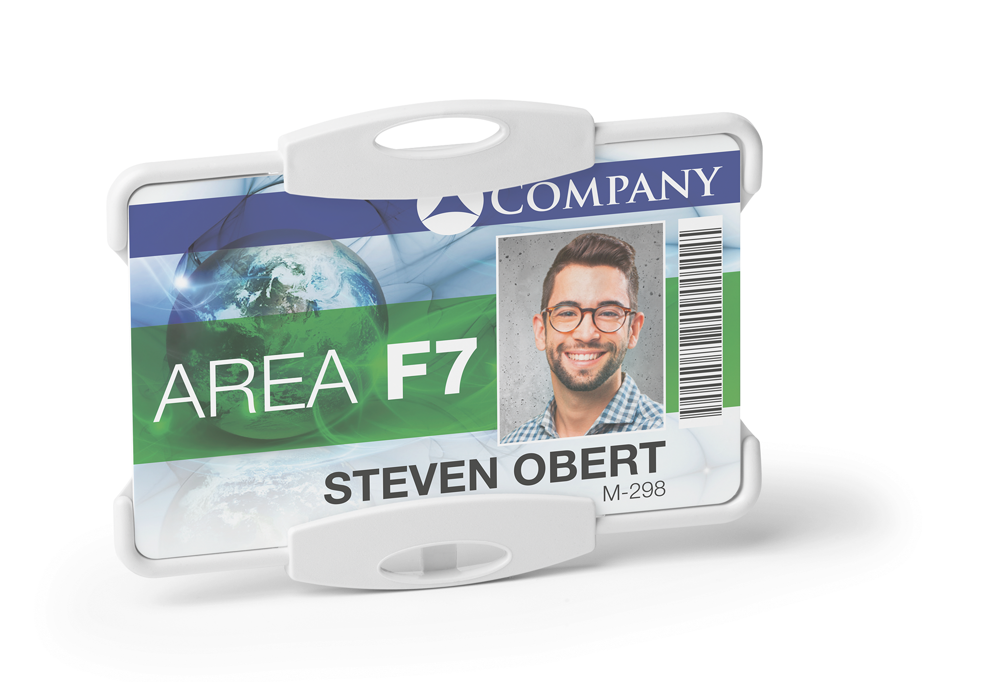 Åben kortholder til et ID- eller adgangskort – Fremstillet af genbrugsplast med Blue Angel certificering – Kan bruges i stående eller liggende format – Kan kombineres med halssnor, udtrækkelig yoyo-nøglering eller kæde