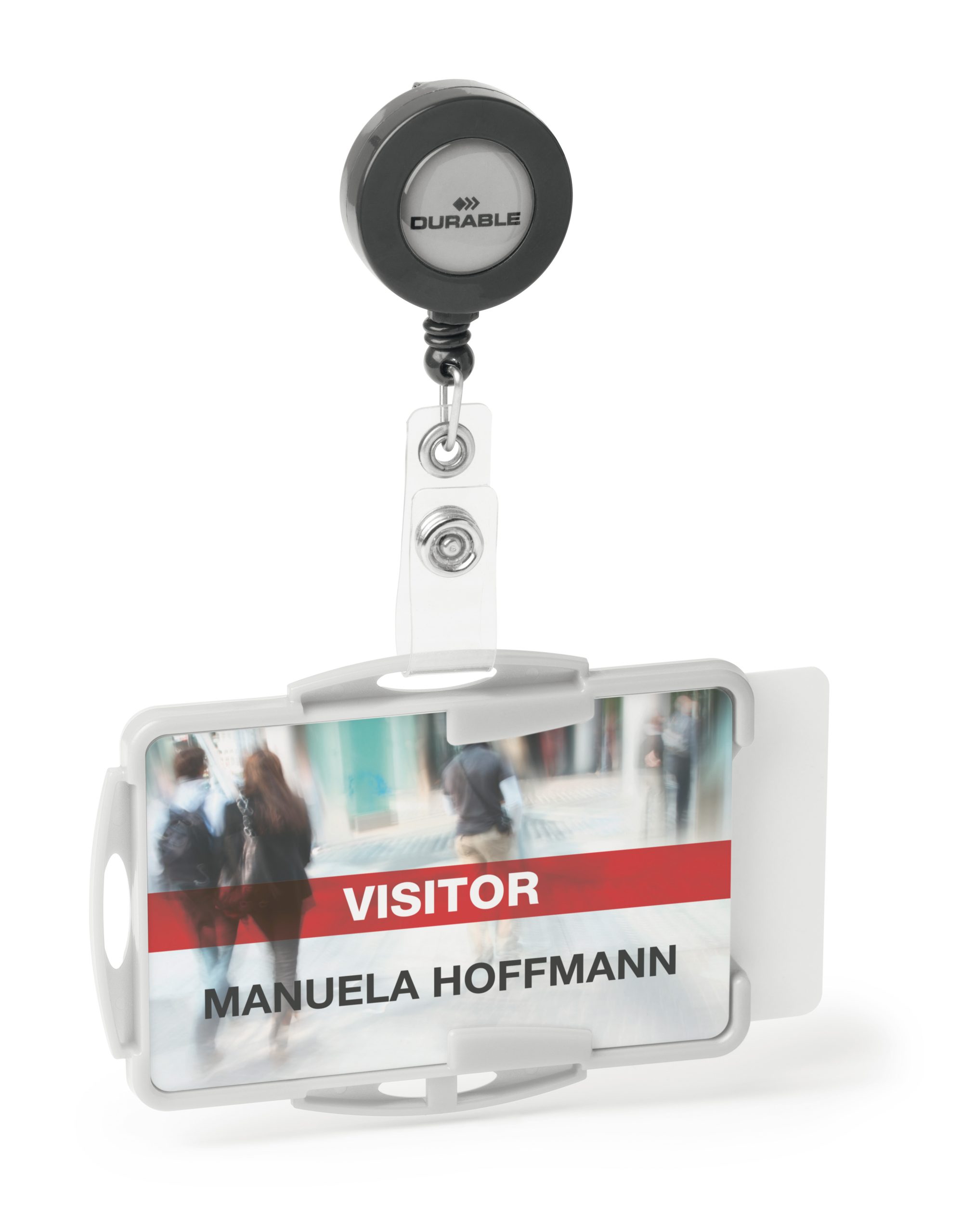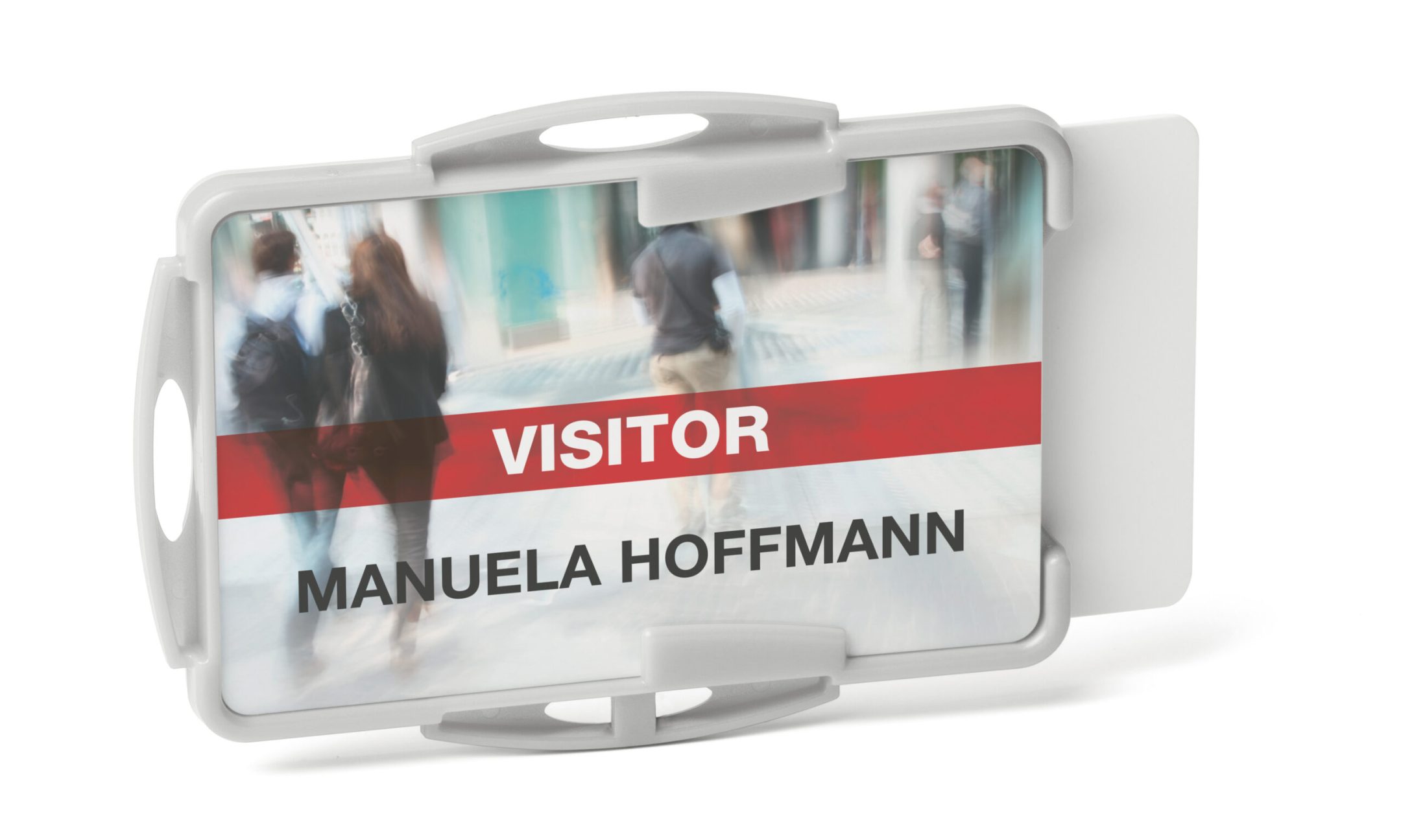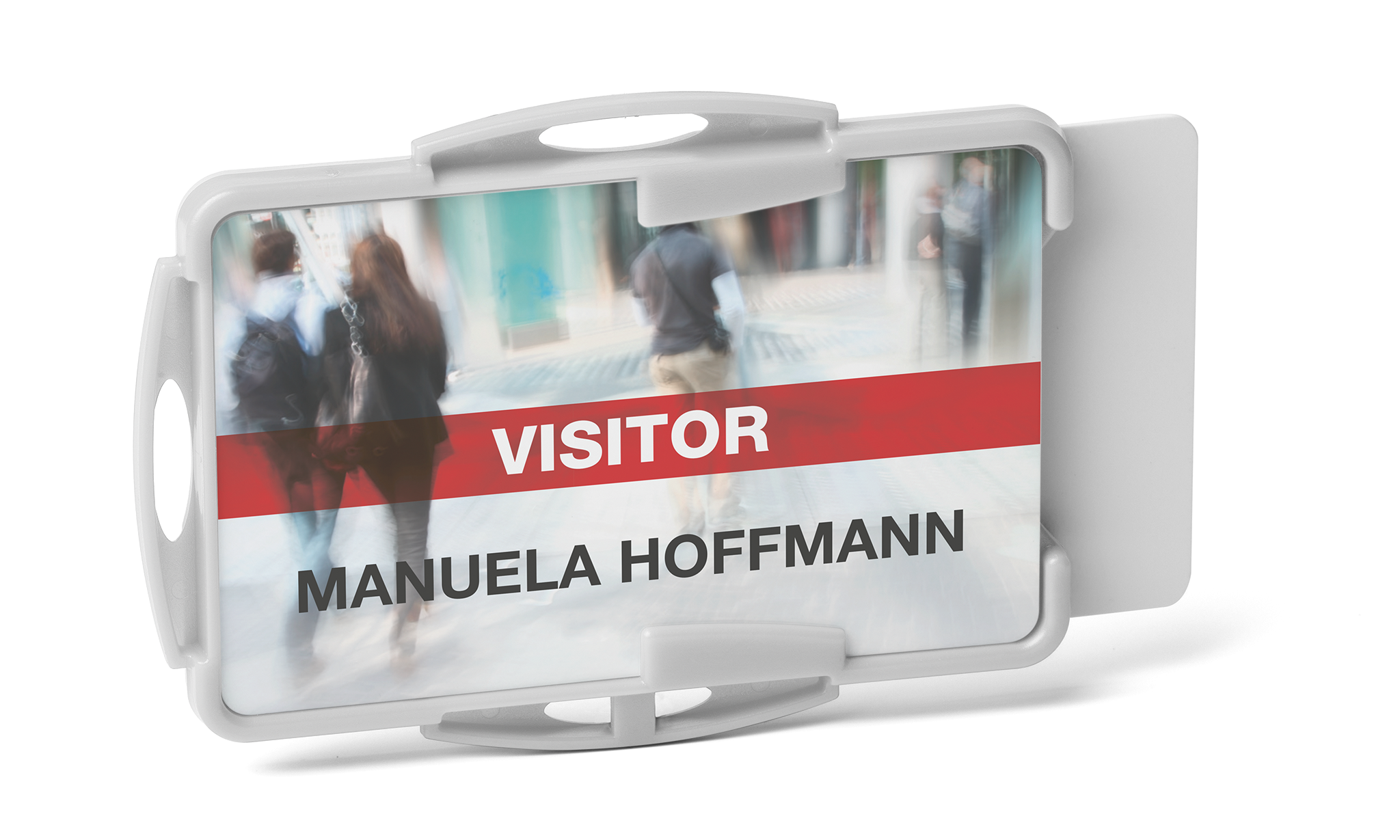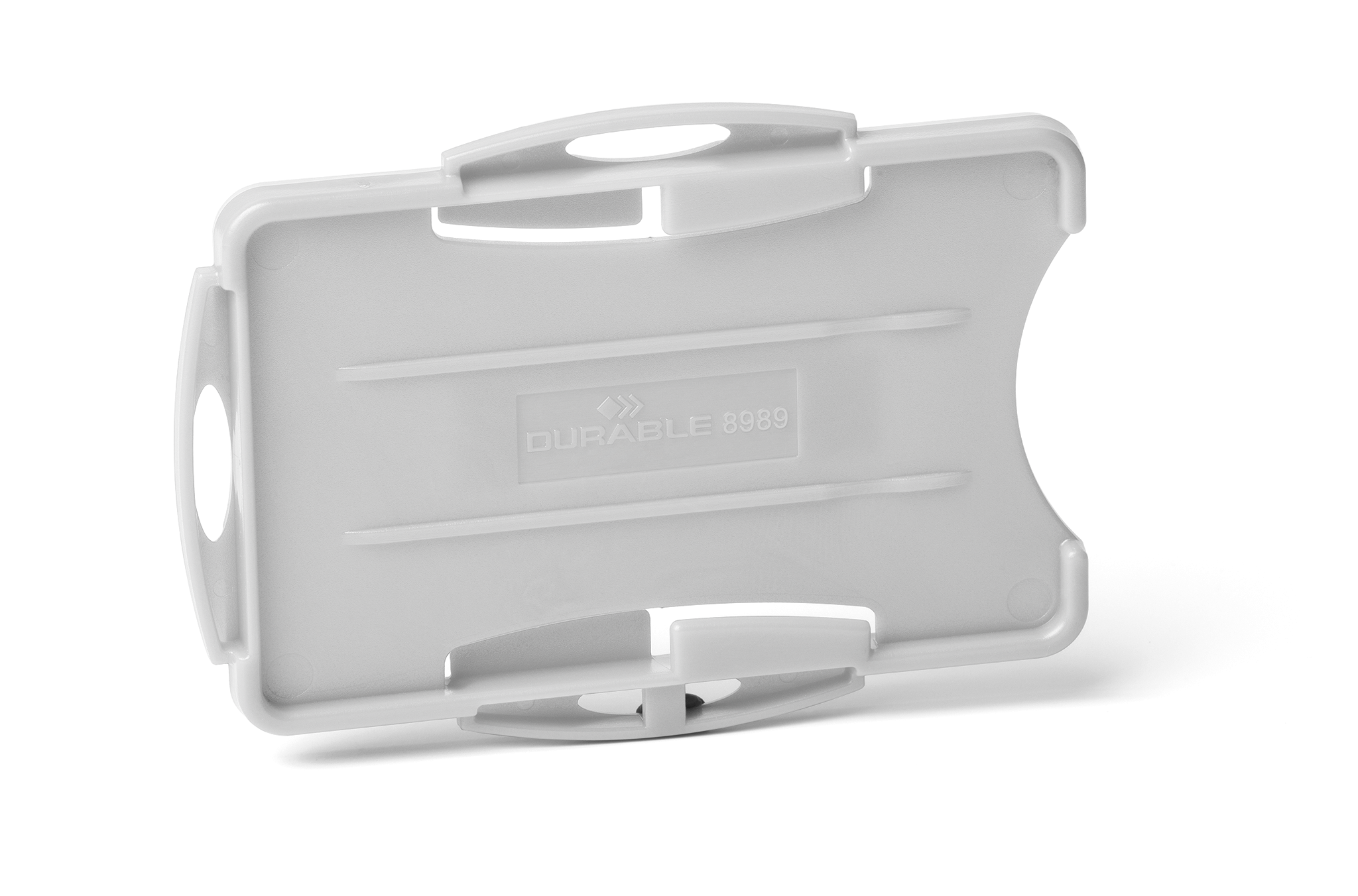 Åben kortholder til to ID- eller adgangskort – Fremstillet af genbrugsplast med Blue Angel -certificering – Kan bruges i stående eller liggende format – Kan kombineres med halssnor, udtrækkelig yoyo-nøglering eller kæde