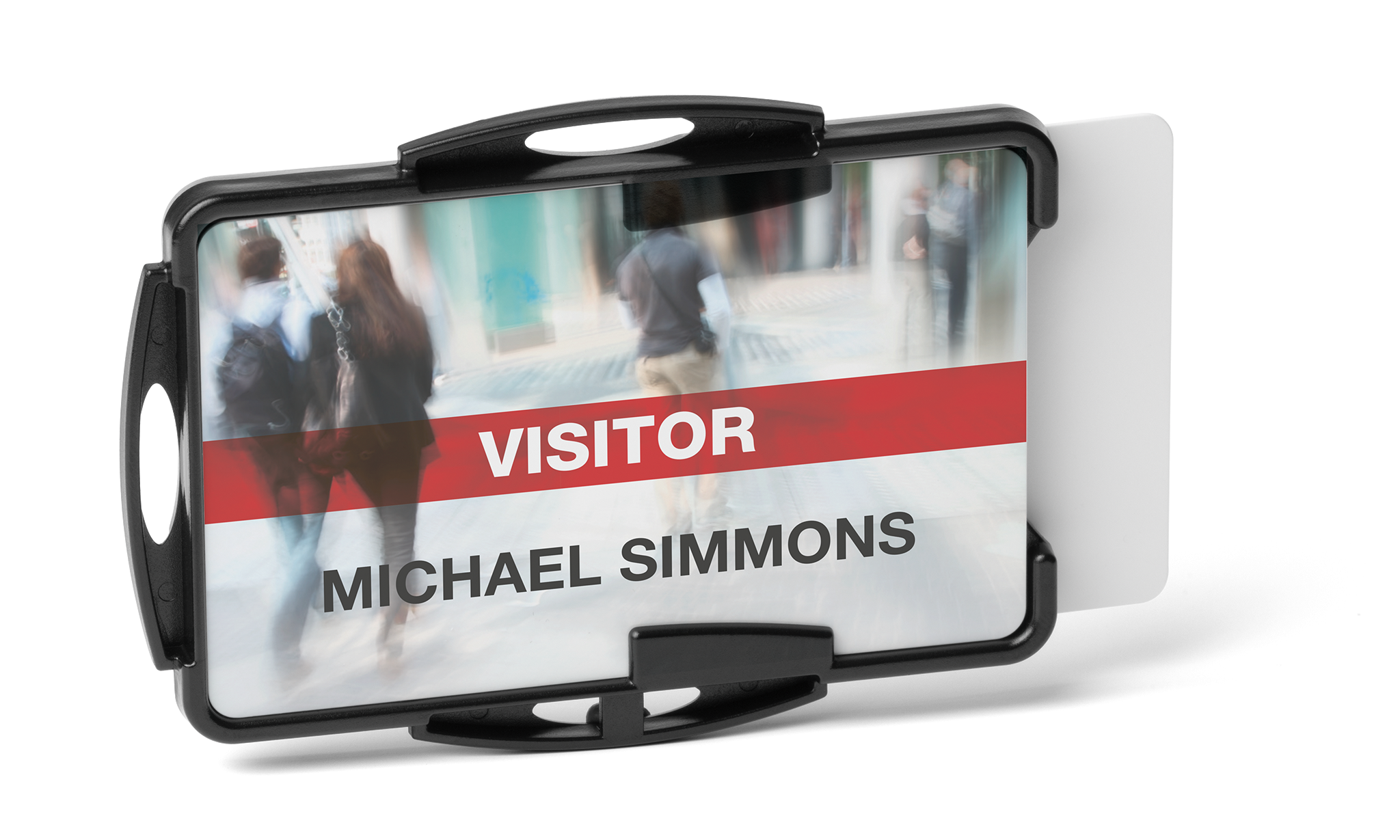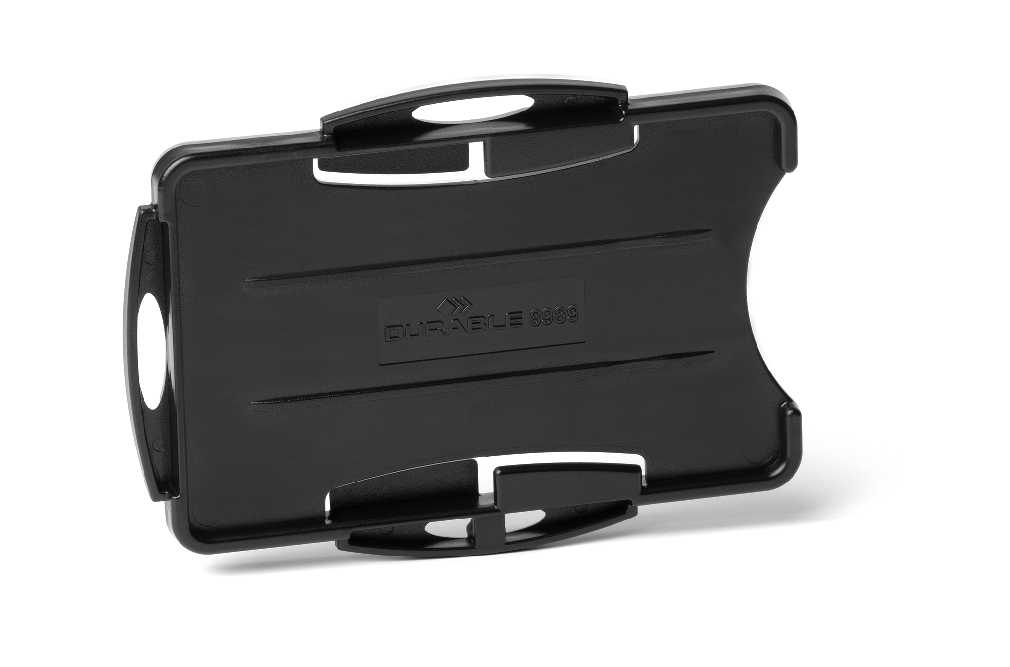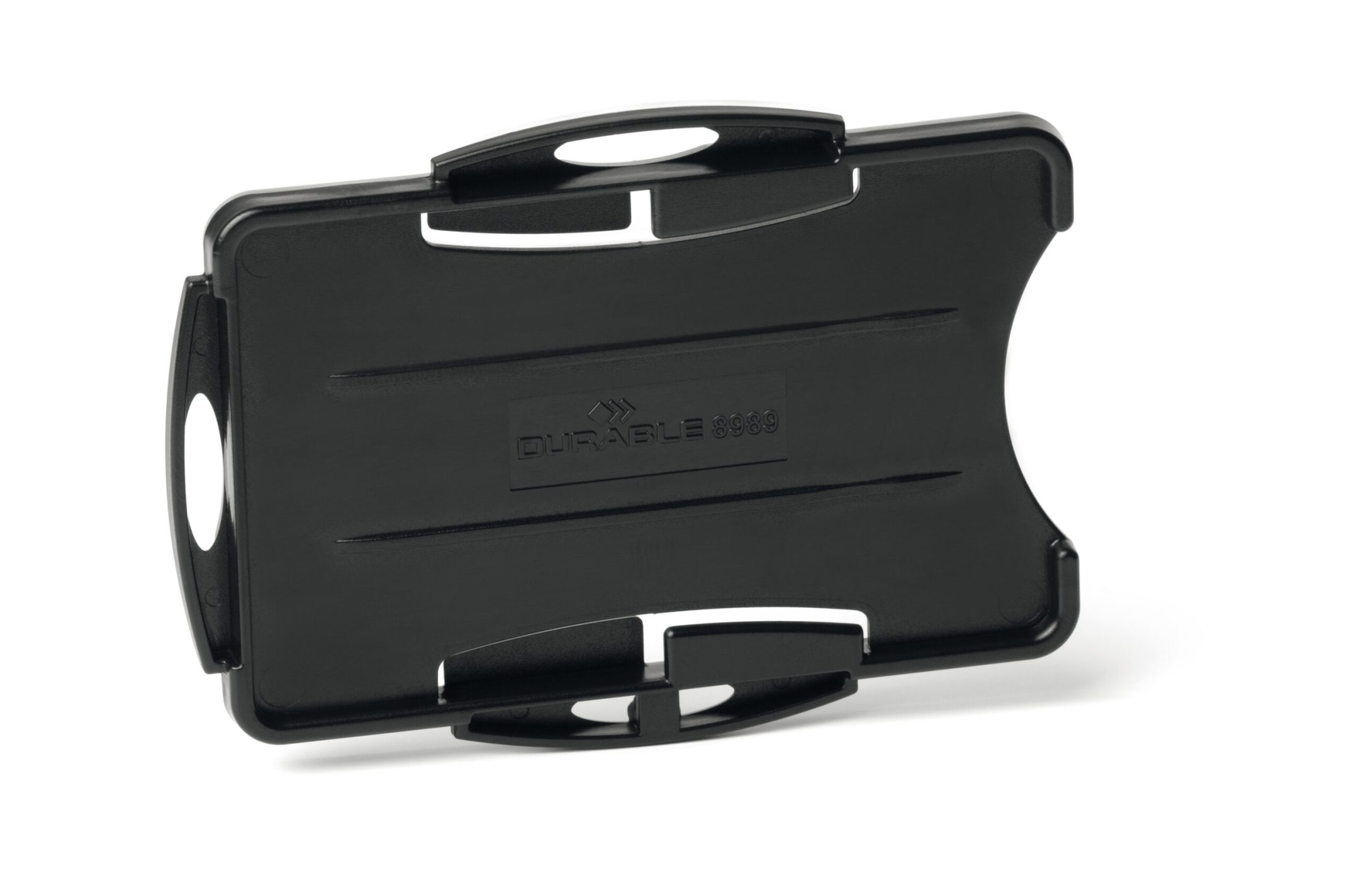 Åben kortholder til to ID- eller adgangskort – Fremstillet af genbrugsplast med Blue Angel -certificering – Kan bruges i stående eller liggende format – Kan kombineres med halssnor, udtrækkelig yoyo-nøglering eller kæde