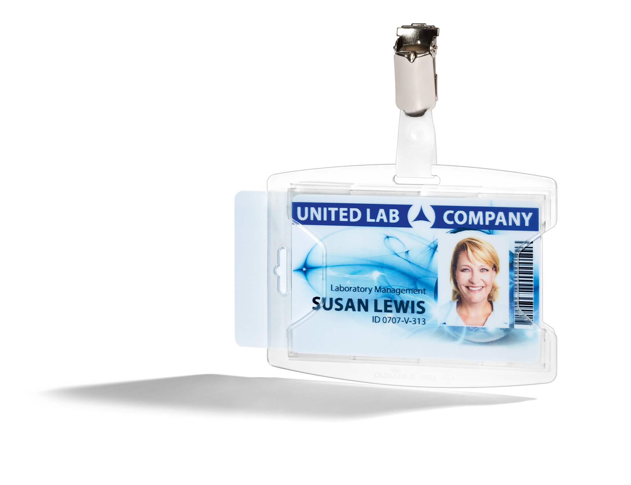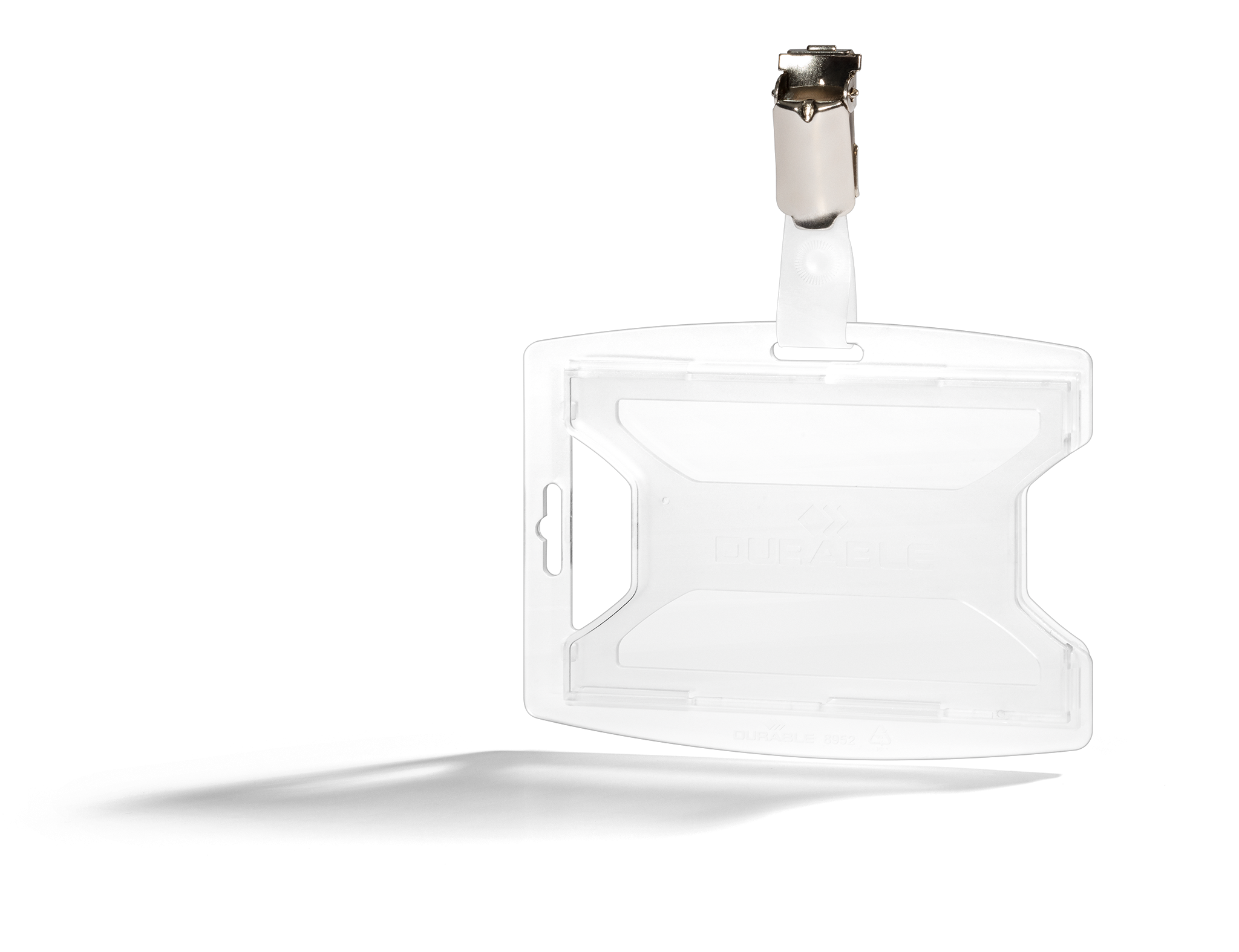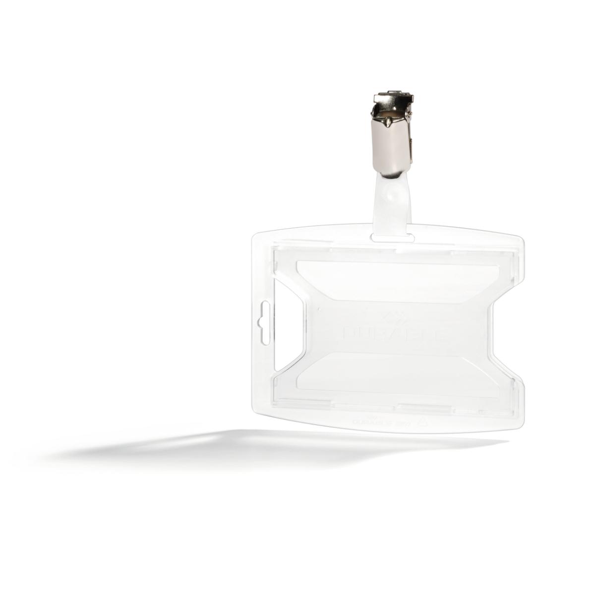 Et godt valg for en organisation, der ønsker at mindske sin miljøpåvirkning! Denne kortholder, lavet af 70% genanvendt polypropylen, har en dækket forside, der beskytter kortet, og en materialebesparende bagside. Tommelgreb gør det nemt at tage kortene ud. Det holdbare materiale tåler daglig brug uden at sprække. Leveres med en drejelig stropklemme, der sikrer, at ID kortet altid hænger i den rigtige position. Kan bruges i stående eller liggende format. Til standardkort ca. 54×85 mm.