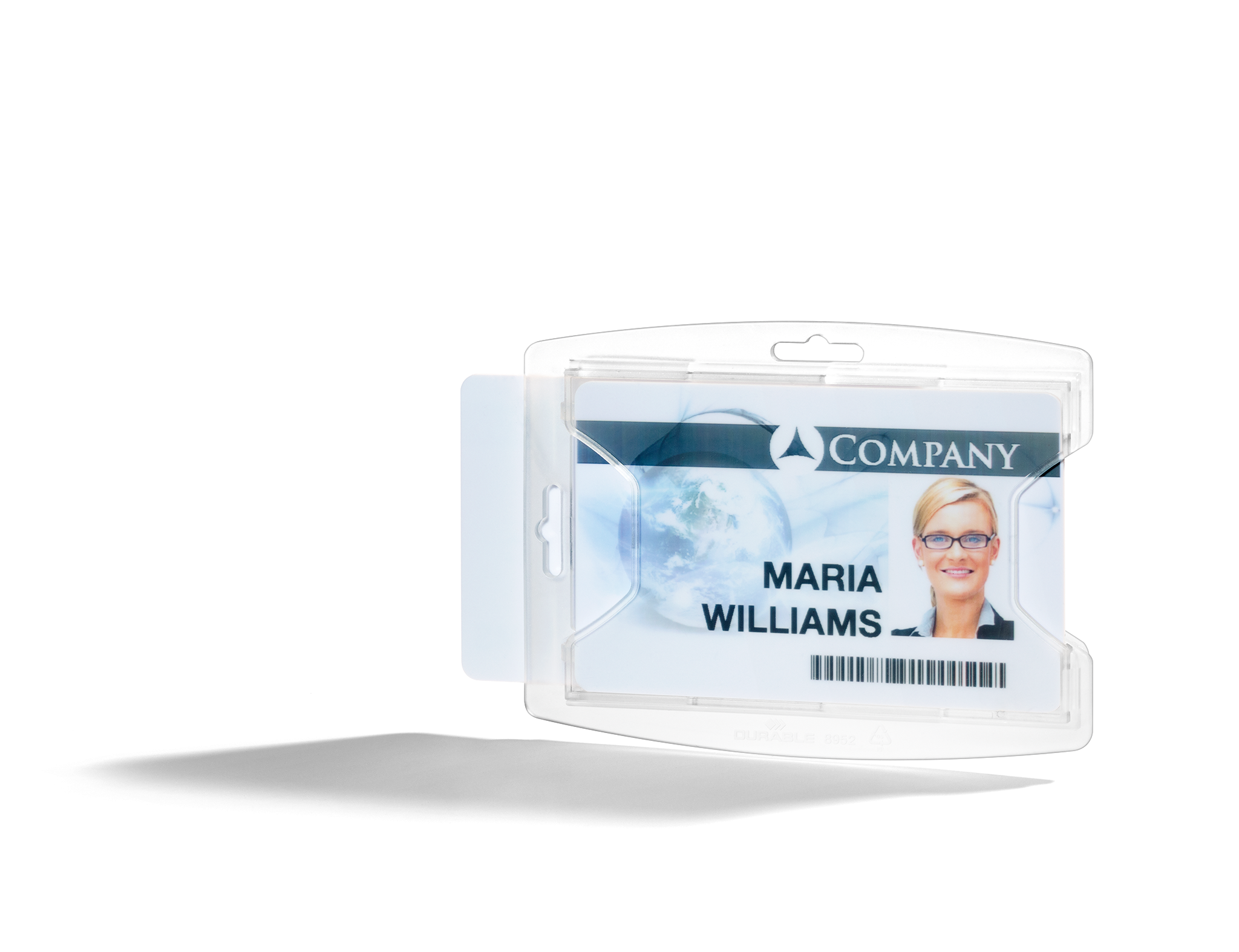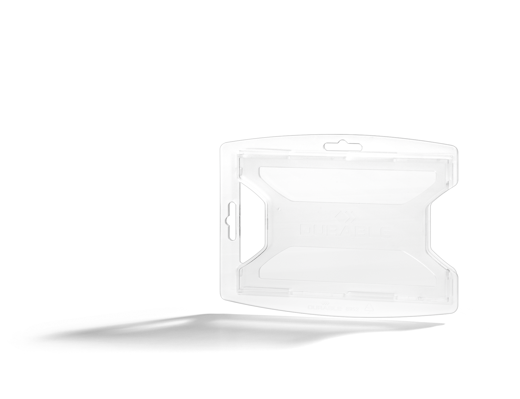 Et godt valg for en organisation, der ønsker at mindske sin miljøpåvirkning! Denne kortholder, lavet af 70% genanvendt polypropylen, har en dækket for- og bagside, der beskytter kortet. Tommelgreb gør det nemt at tage kortene ud. Det holdbare materiale tåler daglig brug uden at sprække. Kombiner med halssnor, yoyo eller stropklemme. Kan bruges i stående eller liggende format. Til standardkort ca. 54×85 mm. Tilbehør: Halssnor ECO af bambustekstil art.nr. 824001, halssnor af rPET art.nr. 8241 i flere farver, stropklemme art.nr. 810326, forskellige udtrækkelige yoyo’er f.eks. 8324 eller 8152.