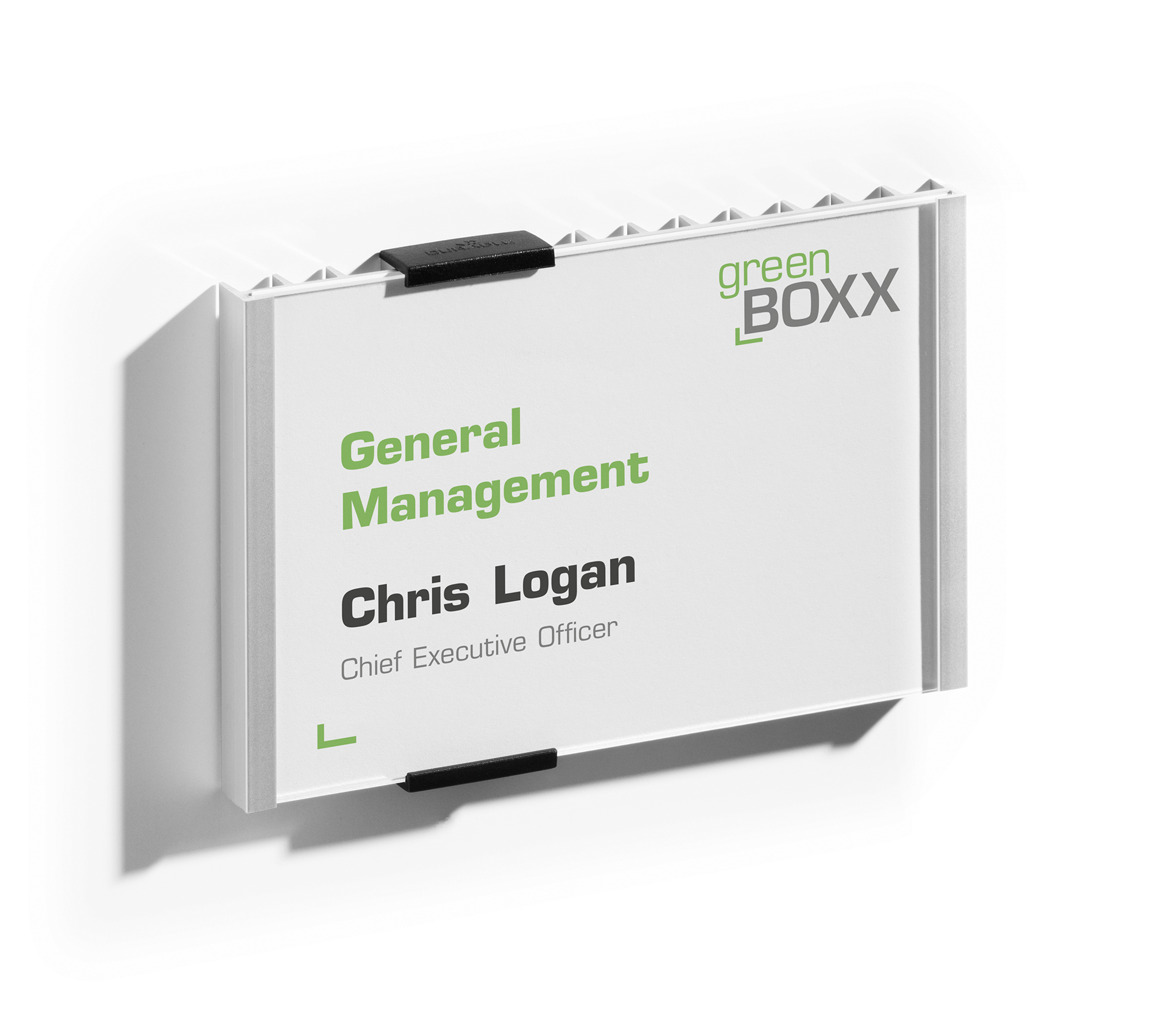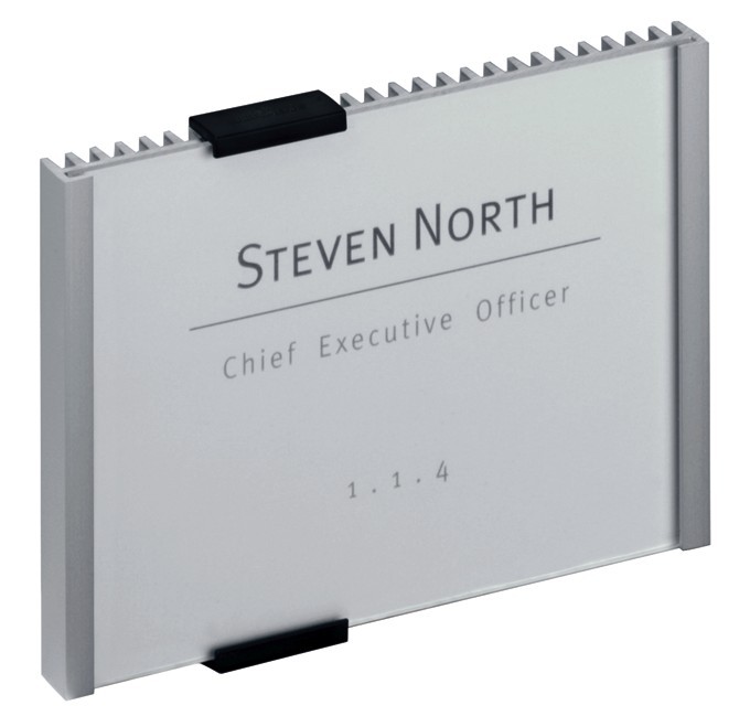 INFO SIGN er en serie i stilrent design som passer i de fleste miljøer. Med refleksfri frontplade i akryl. Leveres med skruer, klæbepuder og neutralt indstiksark. Ekstra indstiksark kan bestilles separat. Anvend DURAPRINT online som kan hjælpe med at fremstille en personlig designet indstiksetiket til skiltet, www.durable.dk.Dørskiltet er i aluminium 149 x 105mm A6. Ekstra indstiksark kan bestilles separat (Durable art nr 4851)