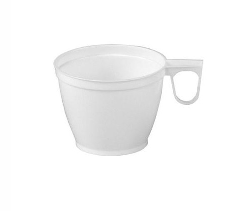 Serverer du varme drikke til firmaarrangementer, fester eller til møder, er dette hvide plastikkrus med hank en god løsning. Du undgår varme fingre og koppen er samtidig nem at holde ved.
